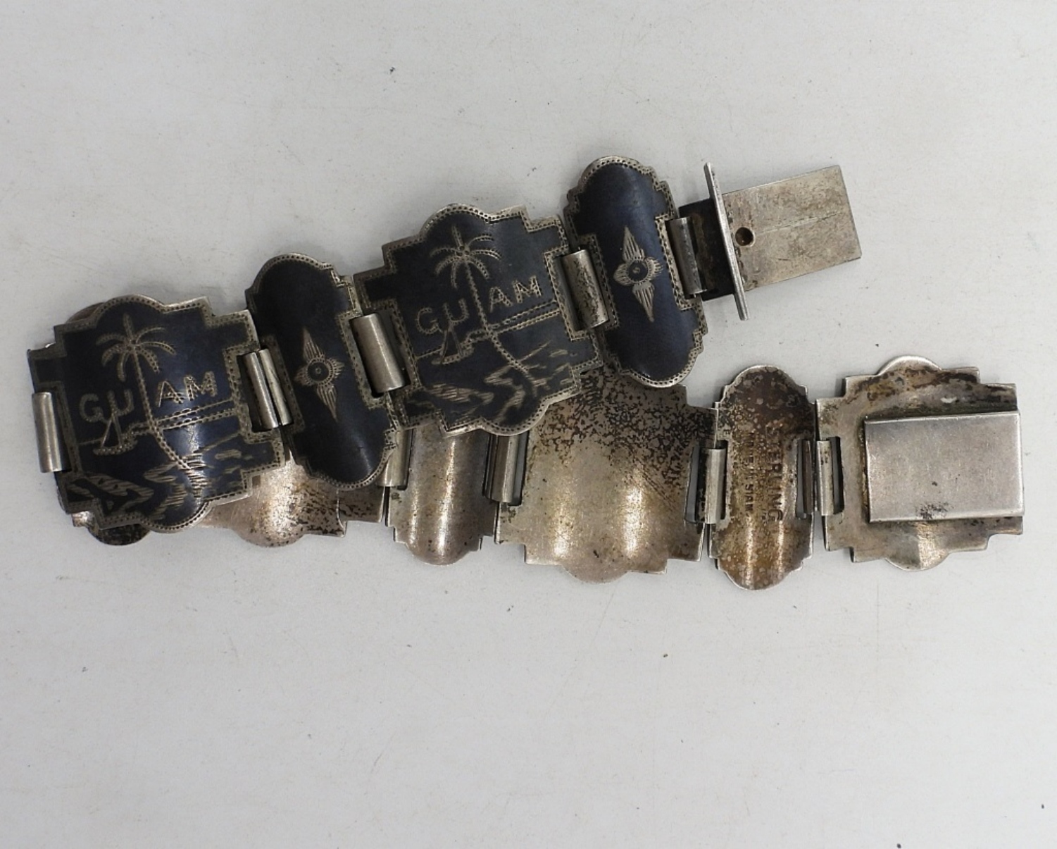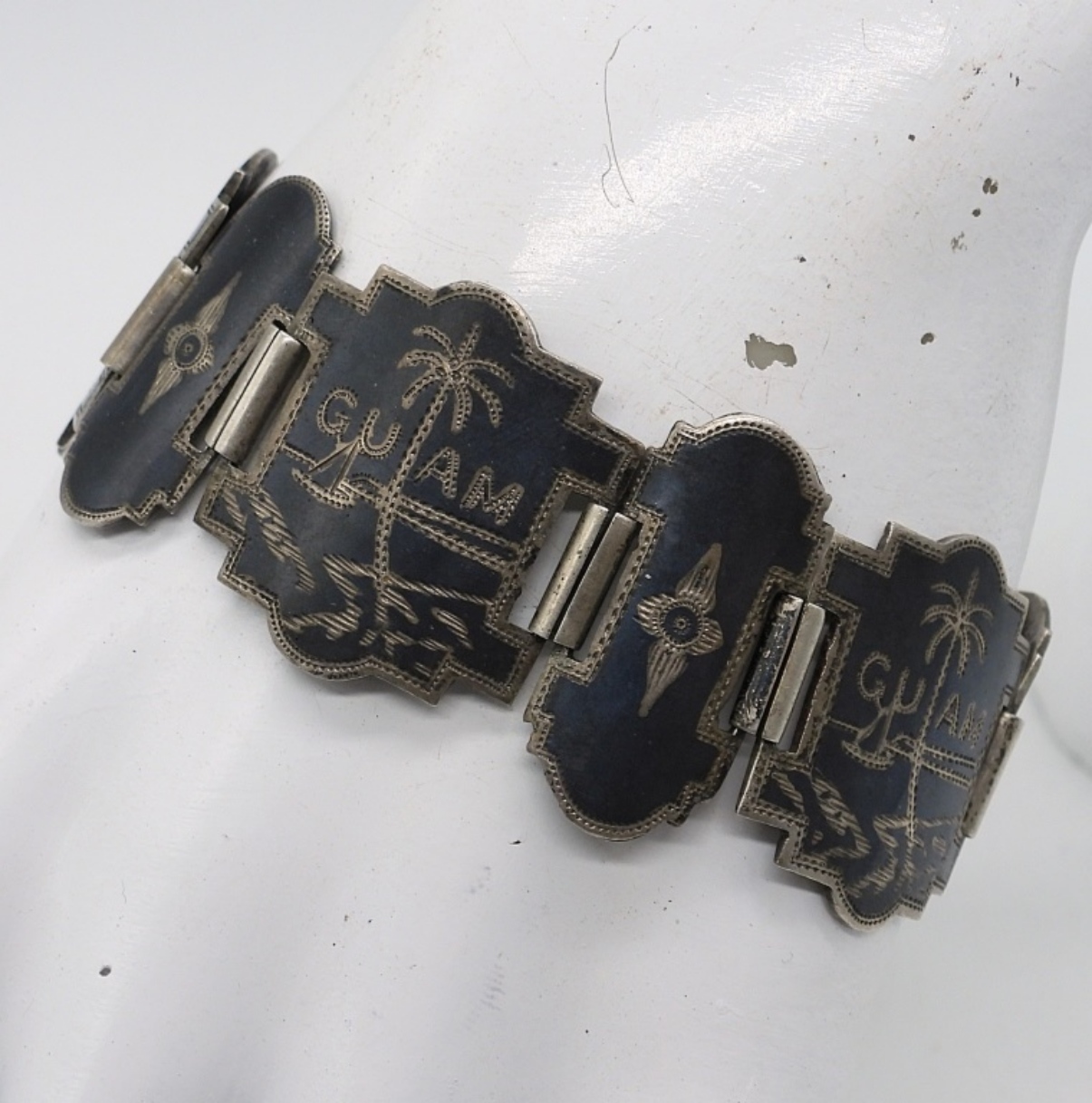 7.5″ SIAM STERLING BRACELET, FEATURING A BEACH SCENE WITH “GUAM” ON IT. (24.5 DWT)