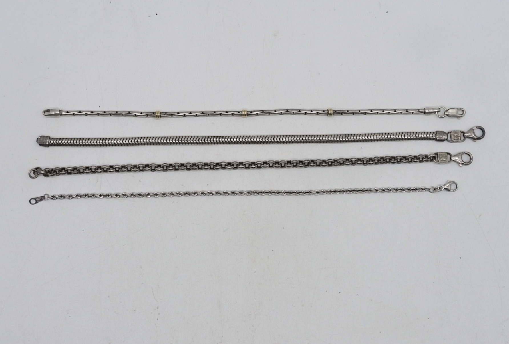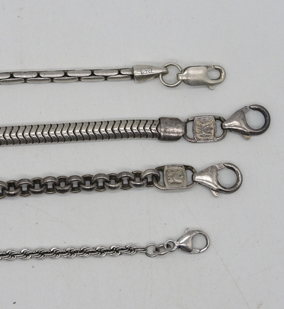 FOUR SILVER 925 & 999 BRACELETS. 7.5″ (16.5 DWT)