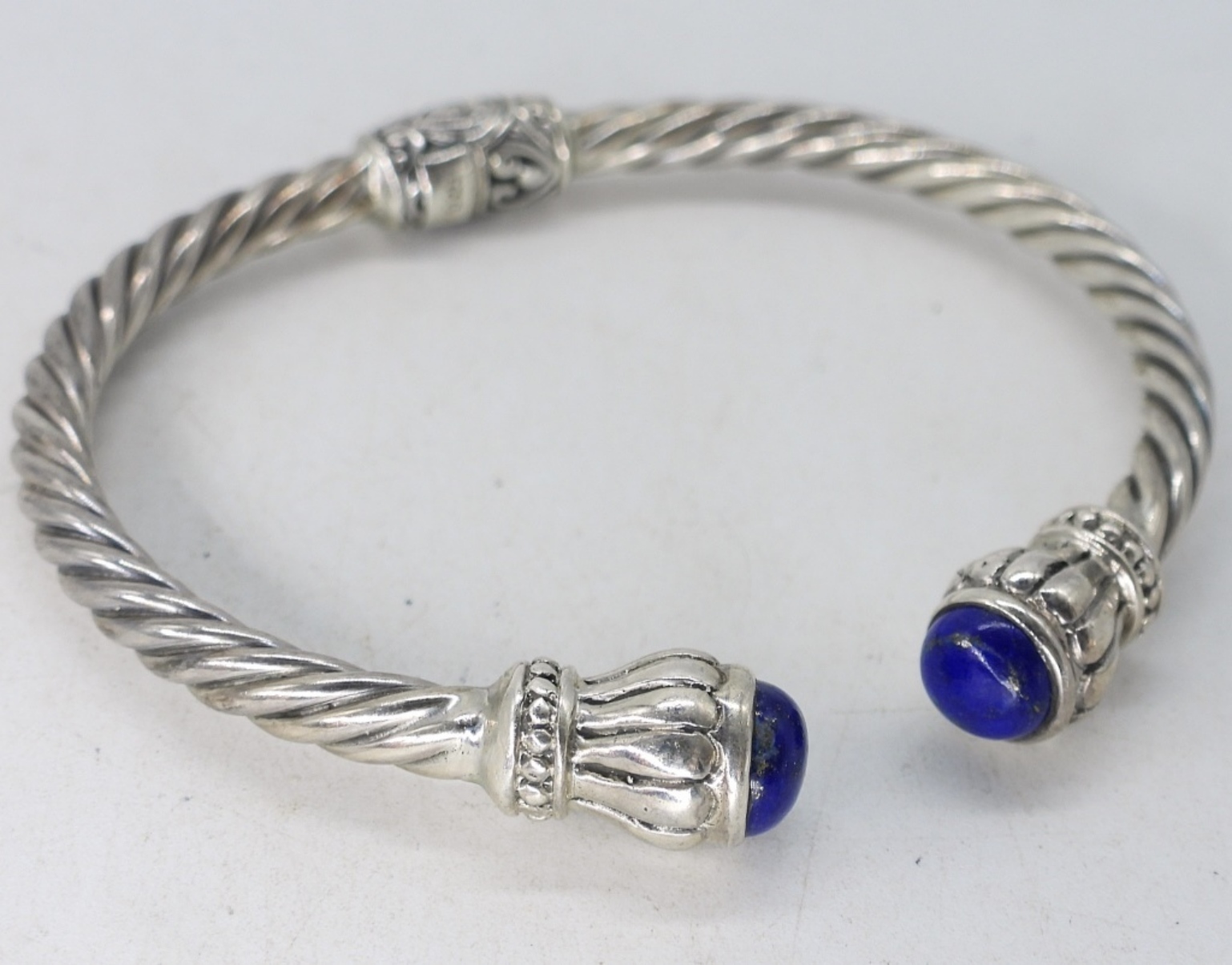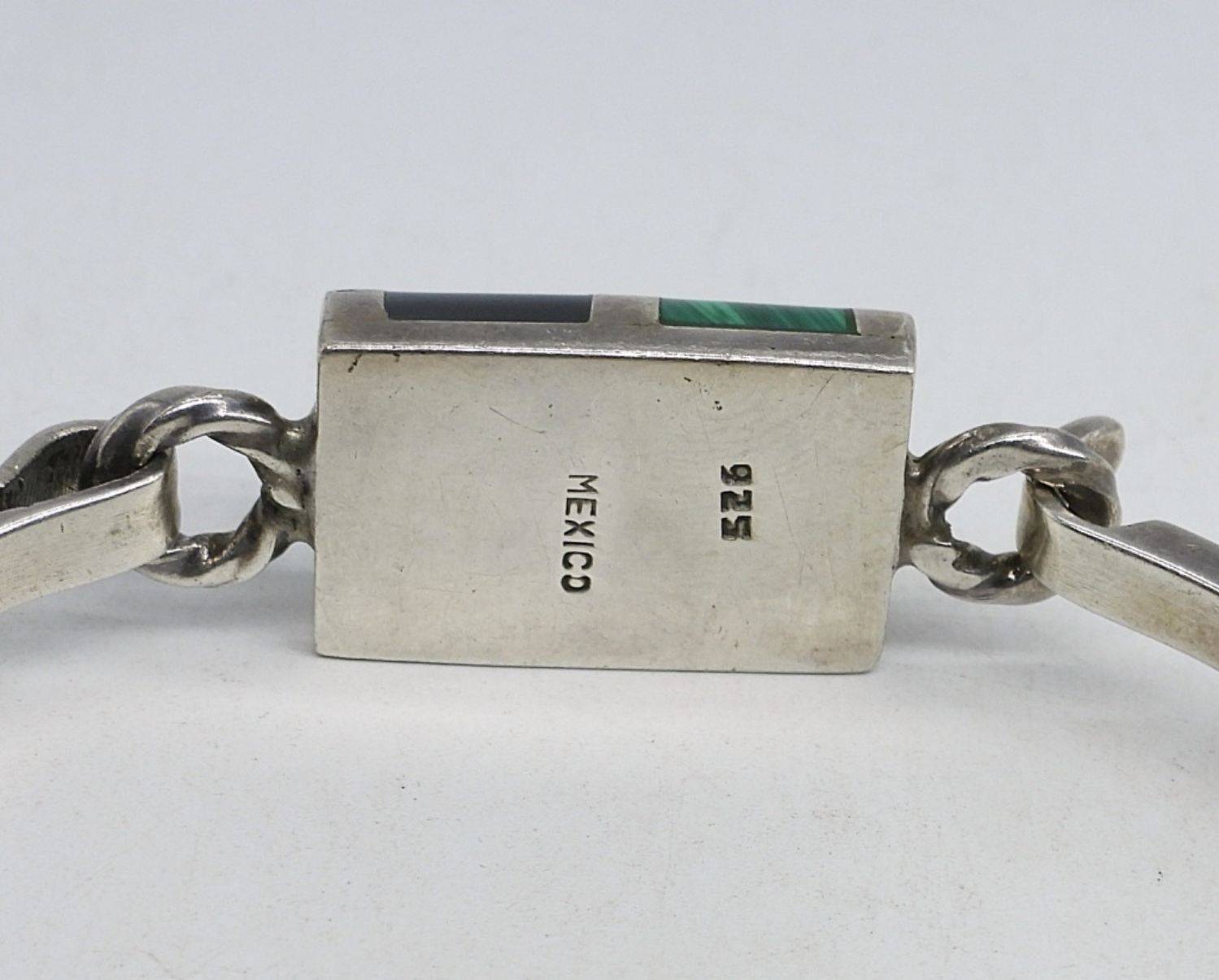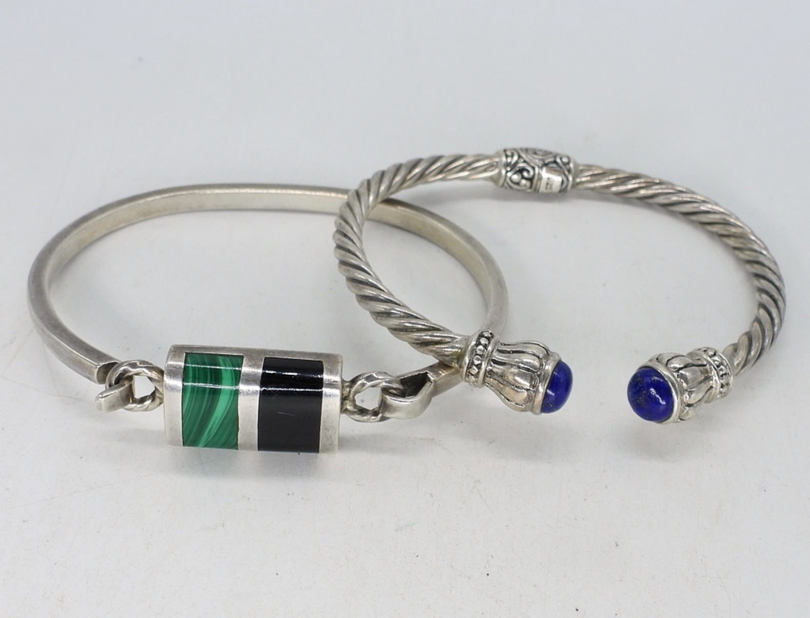 TWO STERLING BRACELETS, MEXICO MALACHITE & BLACK ONYX. STERLING WITH LAPIS LAZULI TIPS. (28 DWT)