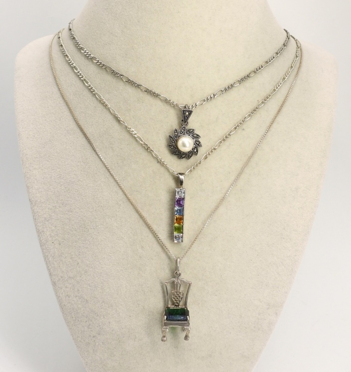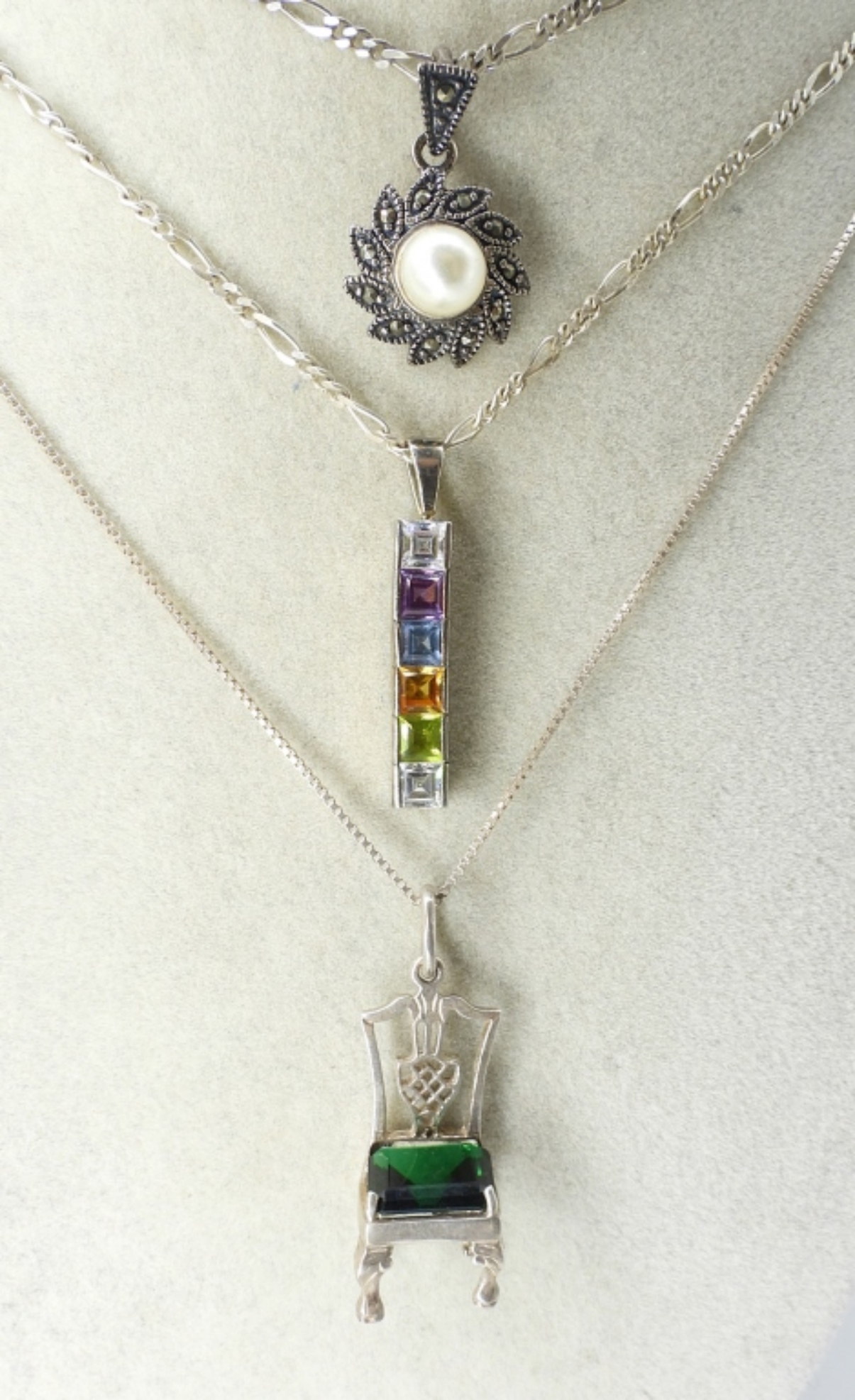 THREE FUN STERLING NECKLACES, CHAINS ARE 18, 20, 24 INCHES. (12.6 DWT)
