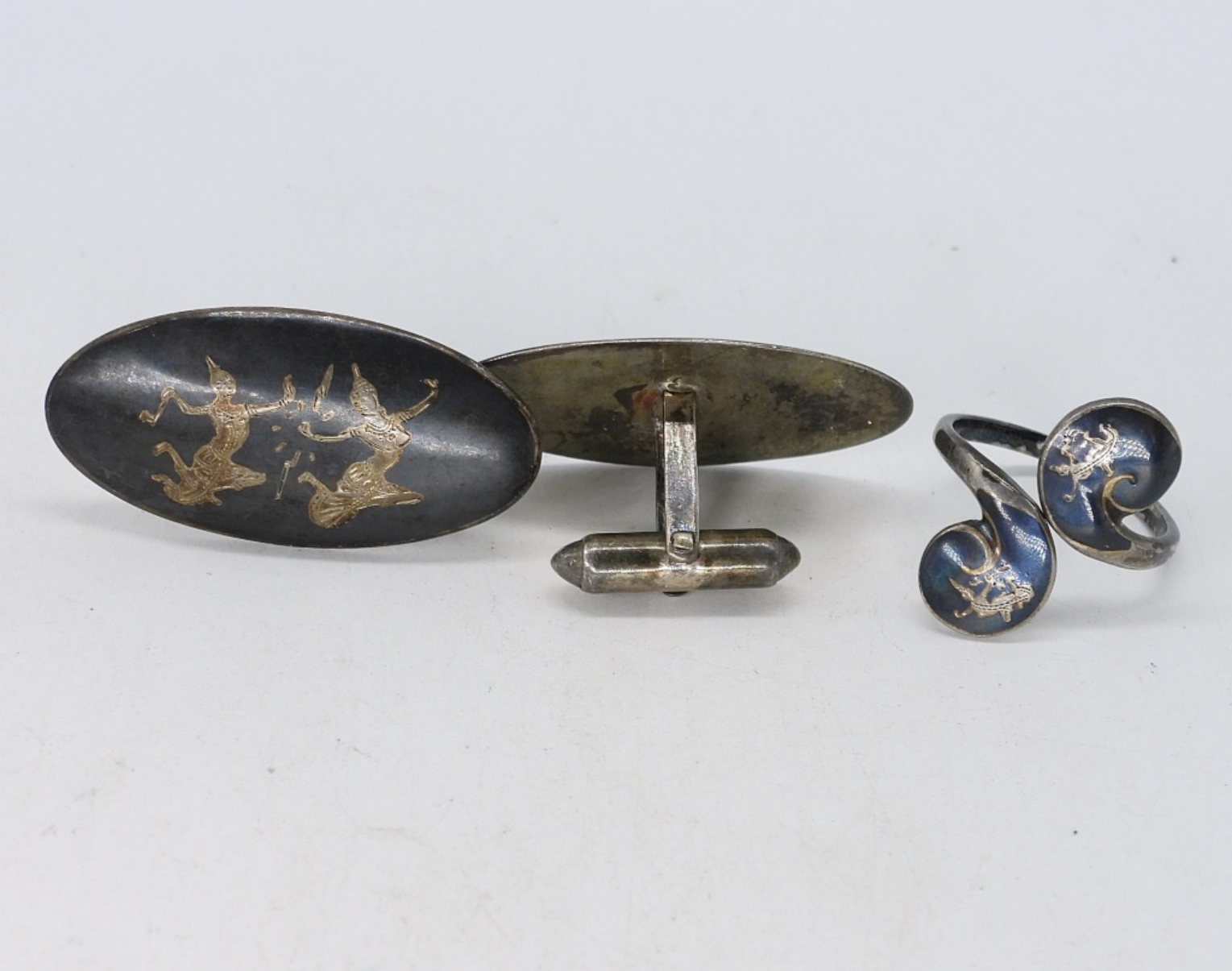 SIAM STERLING CUFF LINKS AND RING SIZE 9 (10.9 DWT)