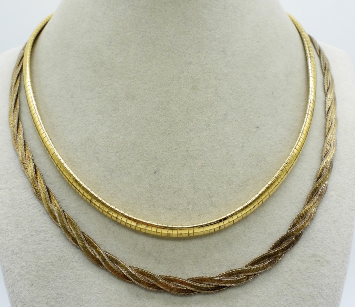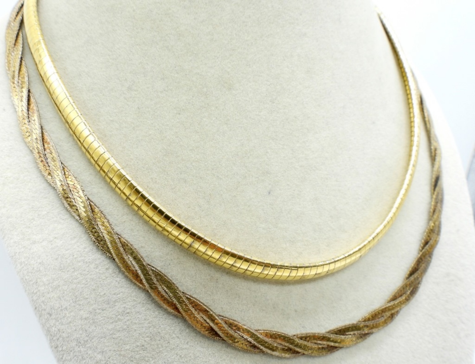 TWO GOLD TONE STERLING NECKLACES. 16″ & 18″. (27.8 DWT)