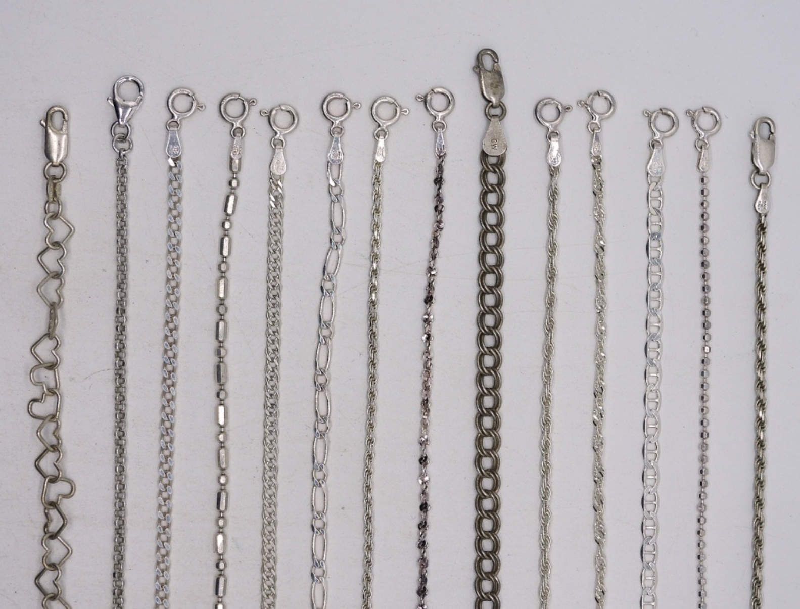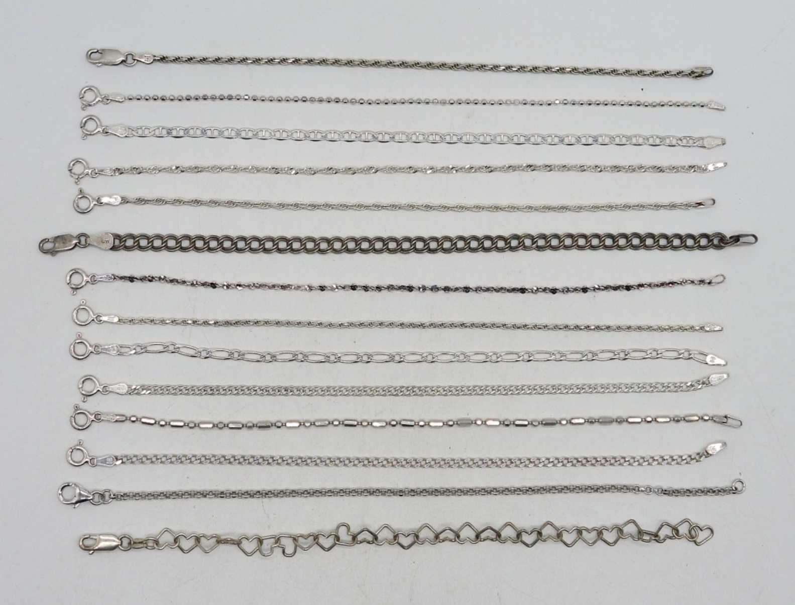 FOURTEEN STERLING CHAIN BRACELETS. 7″ – 8″. (25.3 DWT)