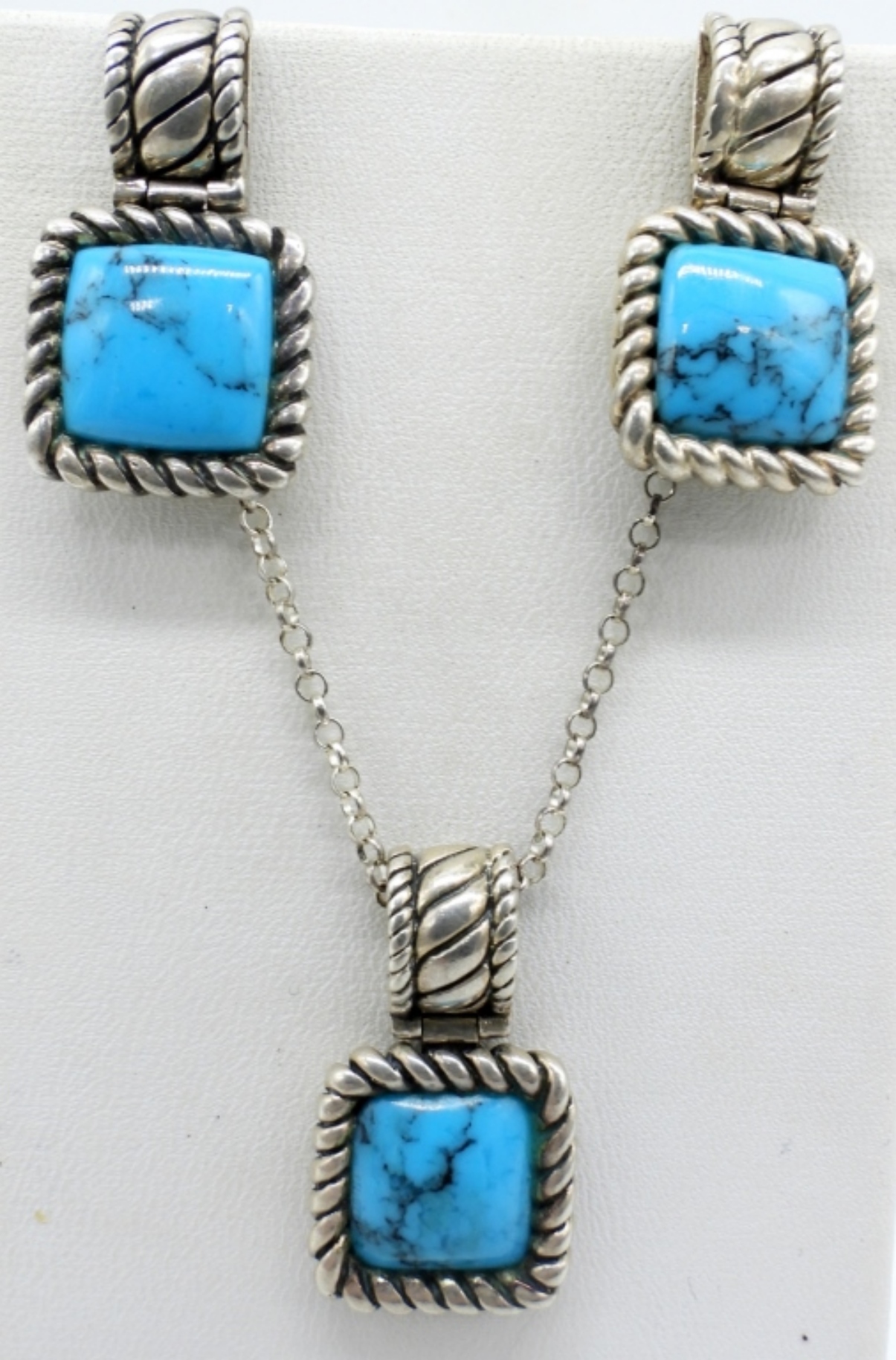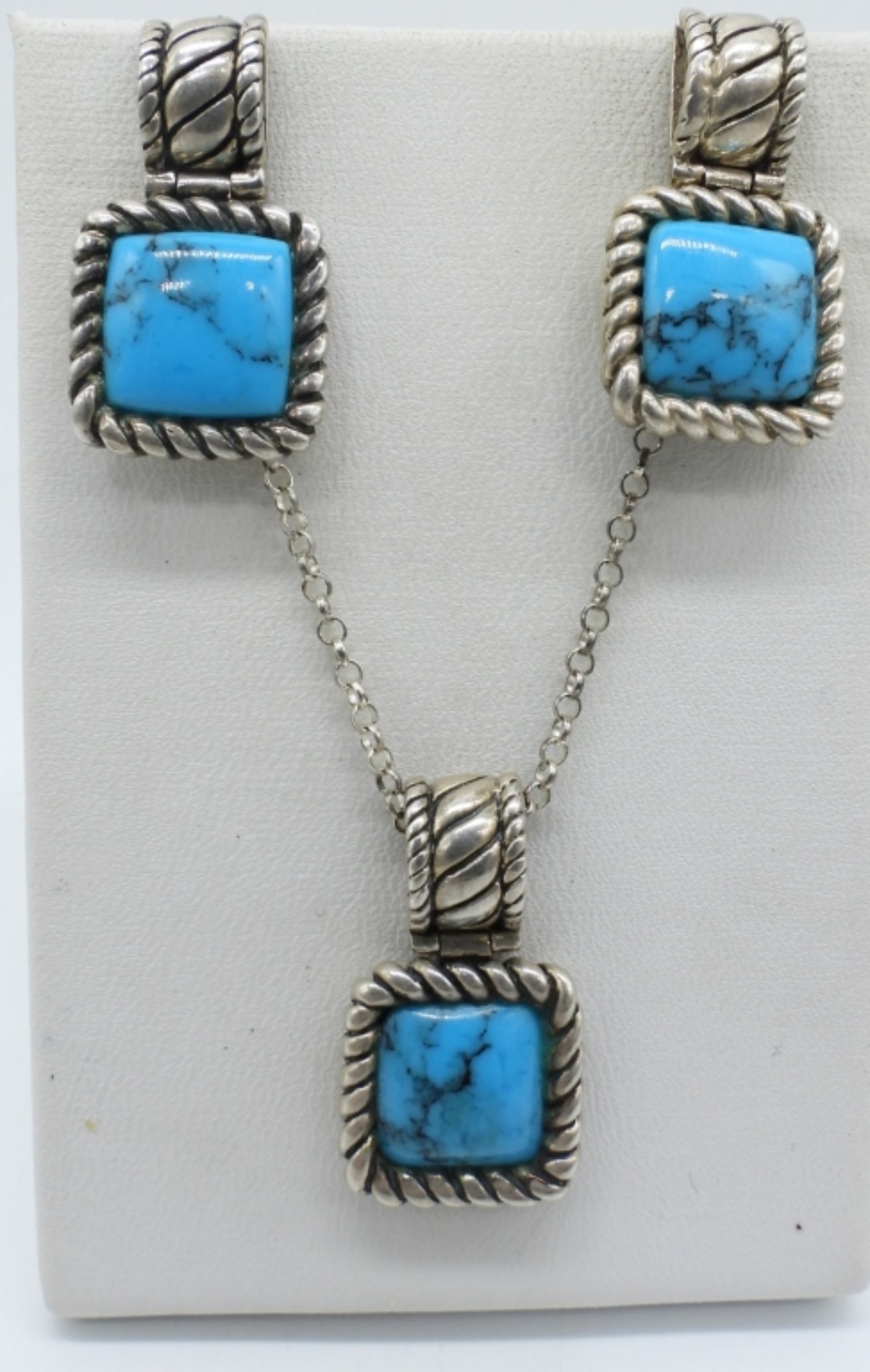 STERLING TURQUOISE NECKLACE 22″ WITH MATCHING PIERCED EARRINGS. (13.2 DWT)