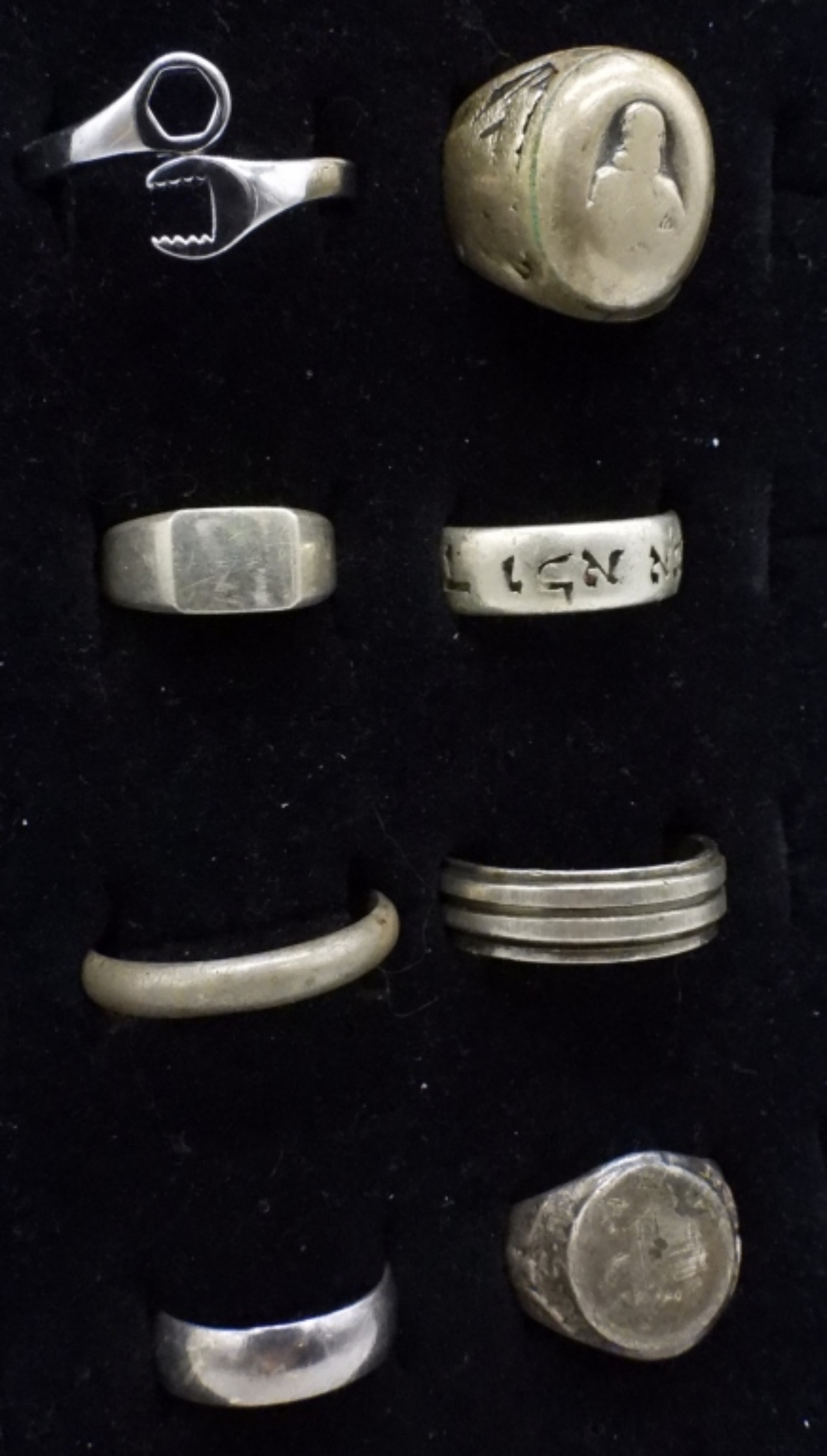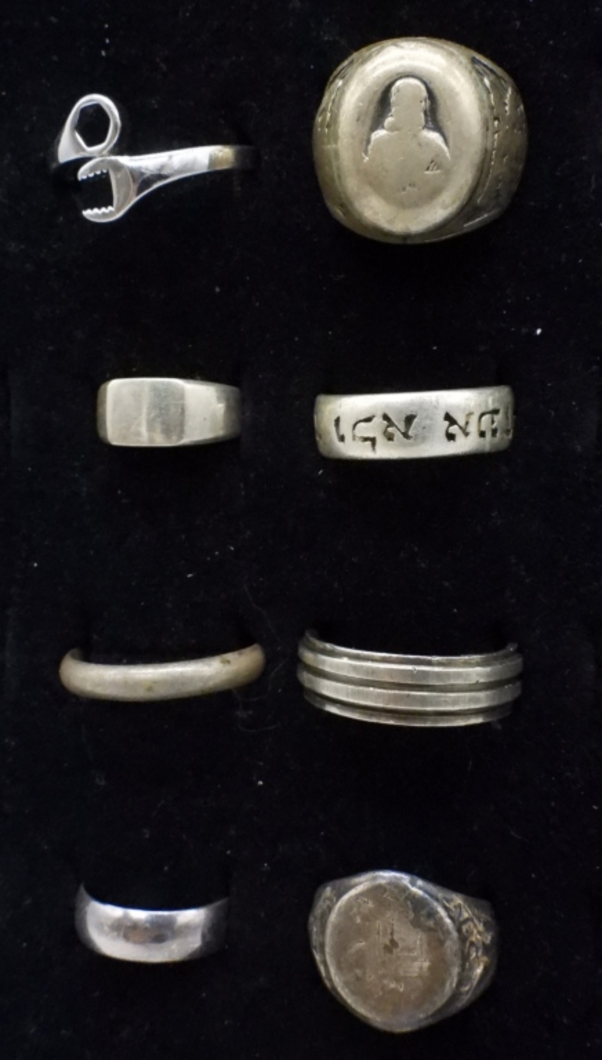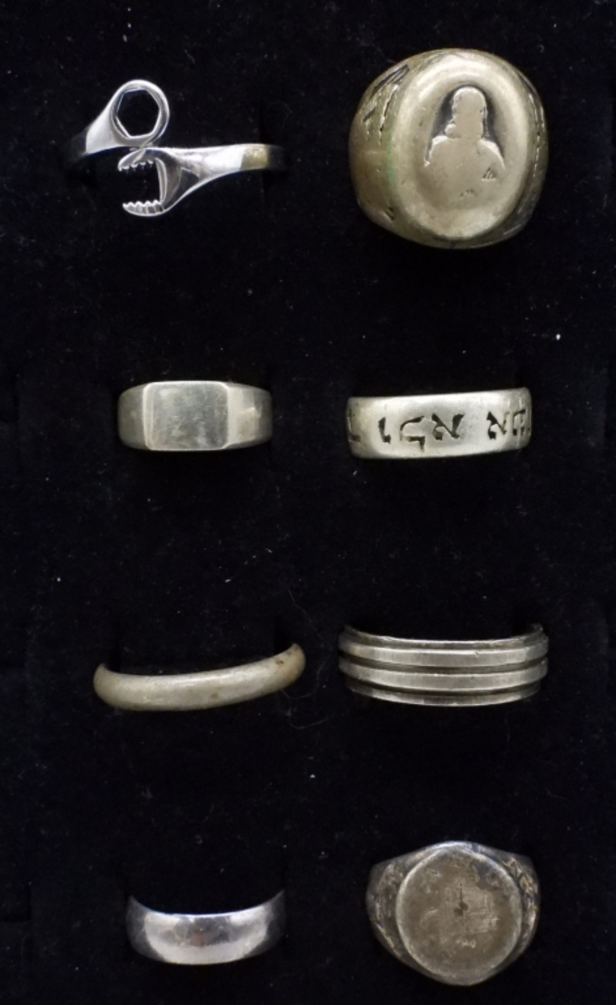 EIGHT STERLING VINTAGE RINGS. SIZES 5-12.5 (31.7 DWT)
