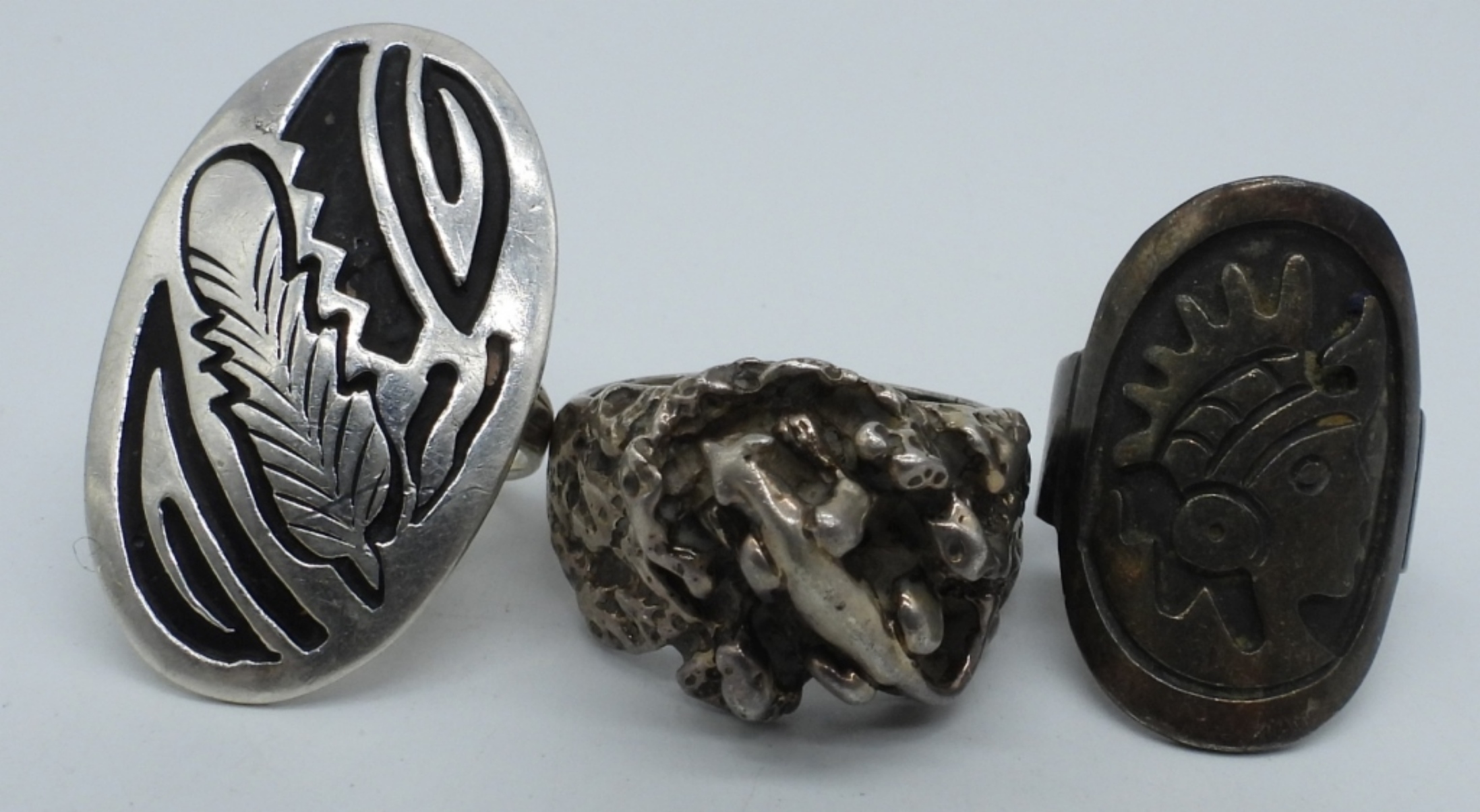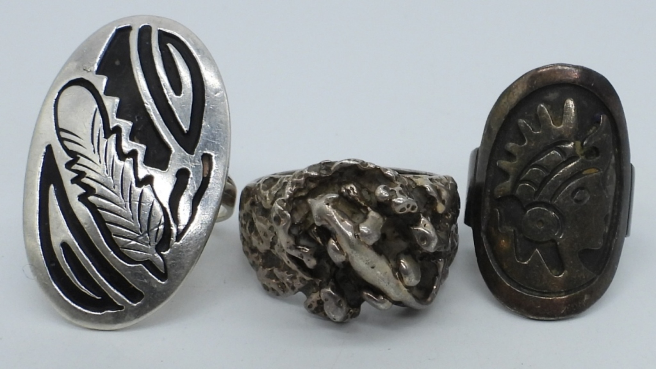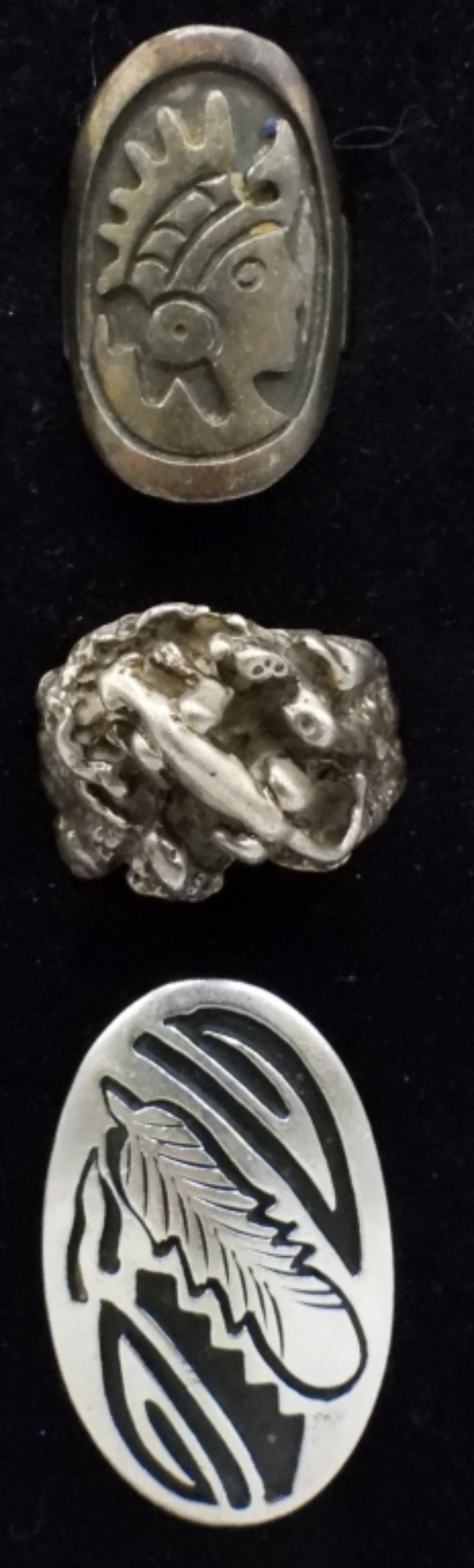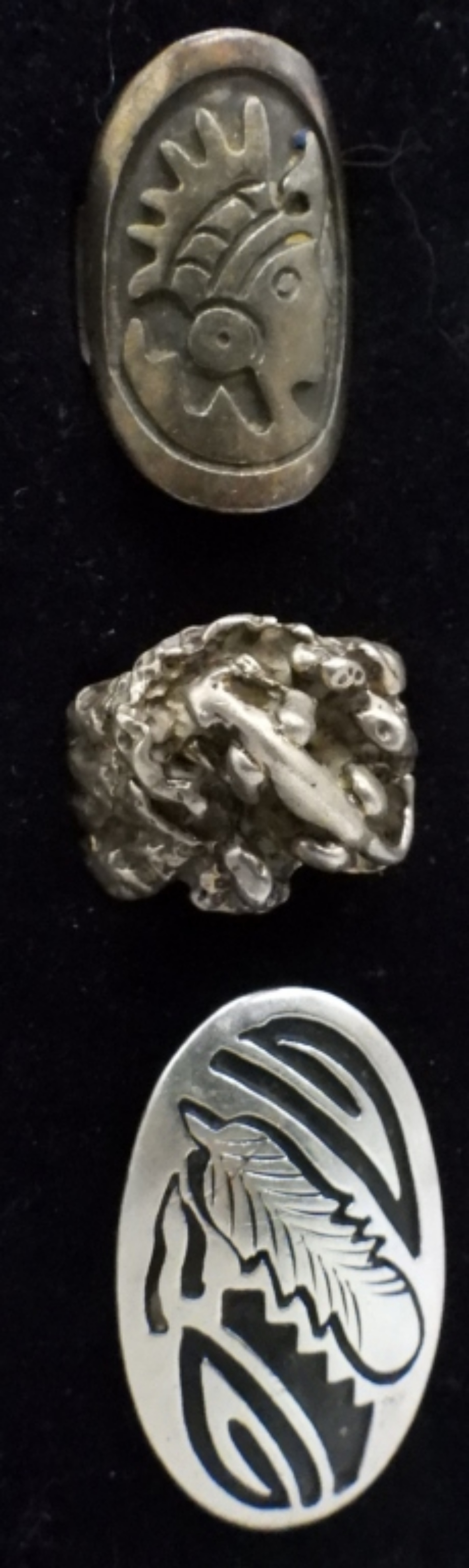 THREE STERLING VINTAGE RINGS, SIZES 6 & 11. (17.2 DWT)
