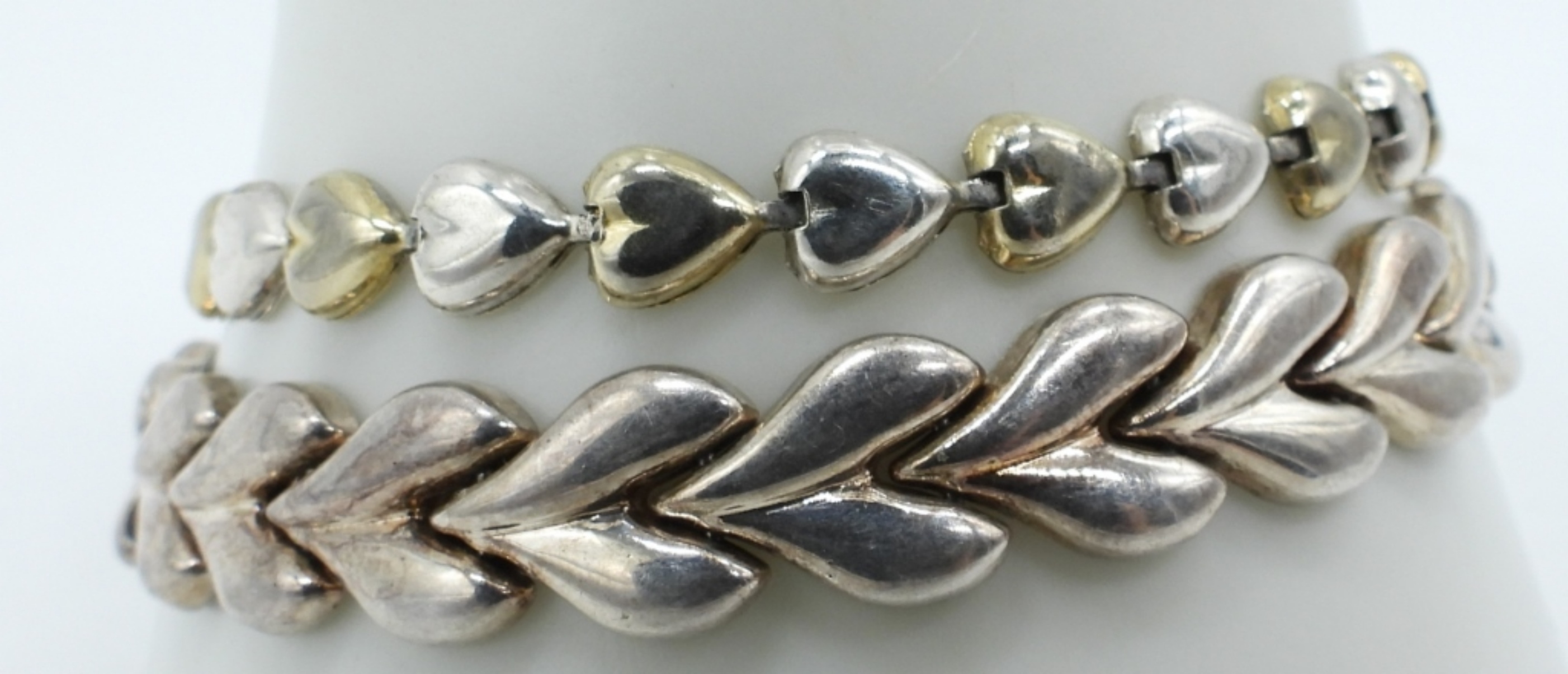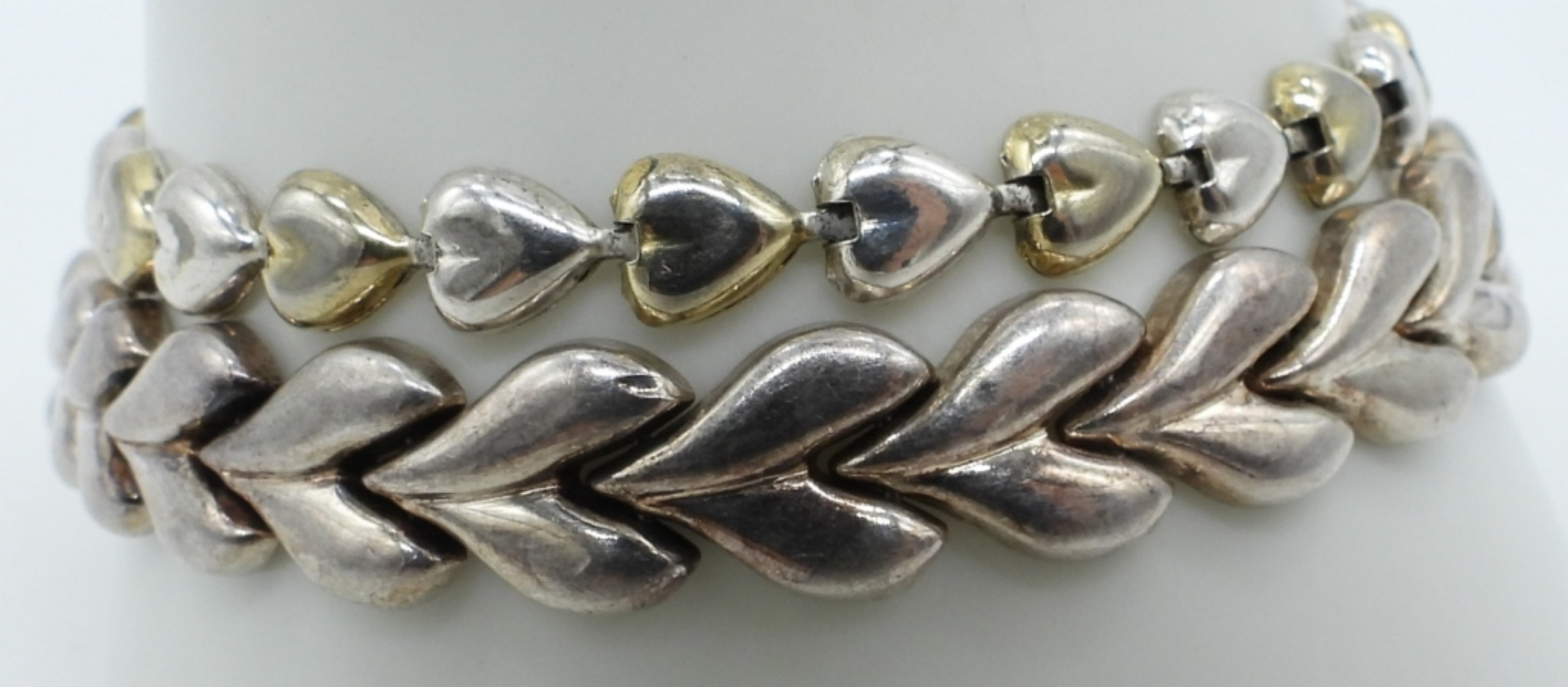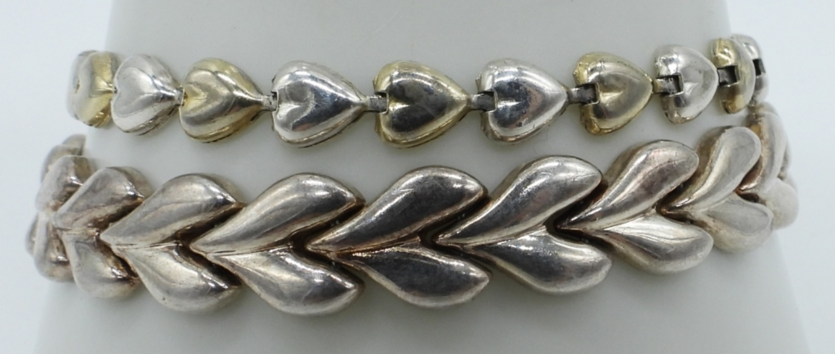 TWO STERLING HEART BRACELETS. 7-8″. (13 DWT)