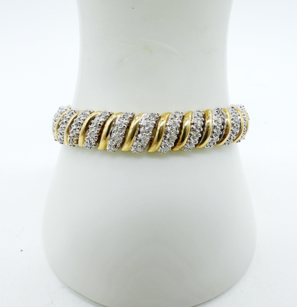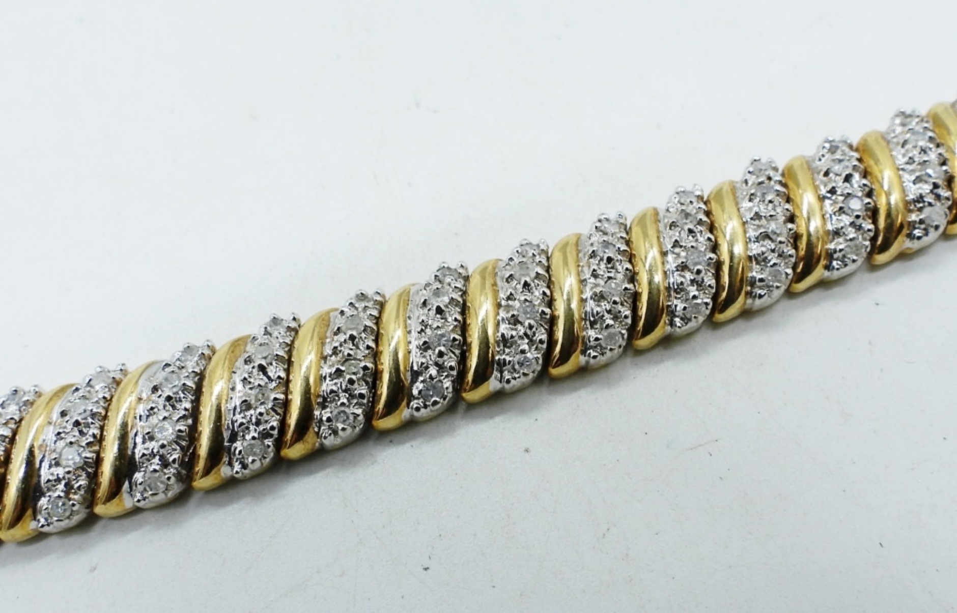 14K YELLOW GOLD, DIAMOND / MOISSANITE BRACELET. 7″. (18.7 DWT)