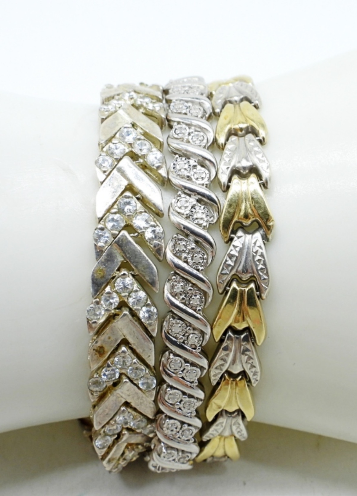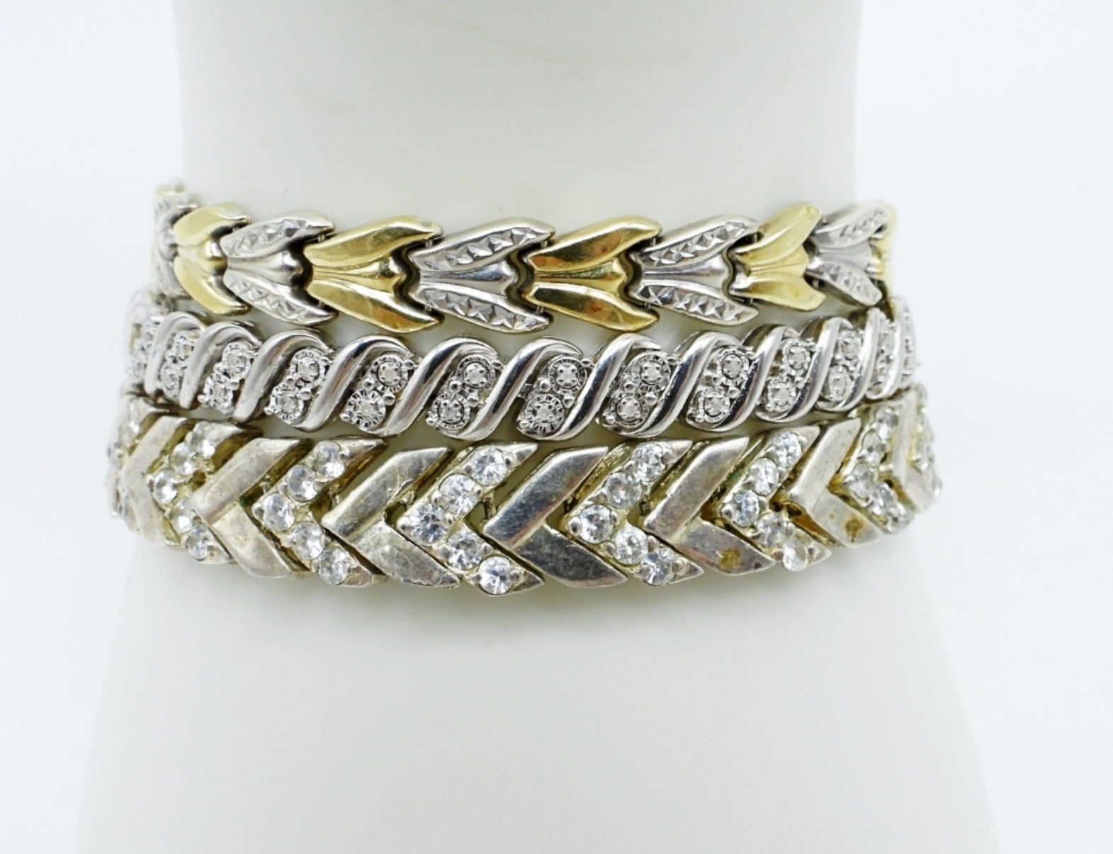 7″ – 7.5″ STERLING & GOLD TONE BRACELETS. (27 DWT)