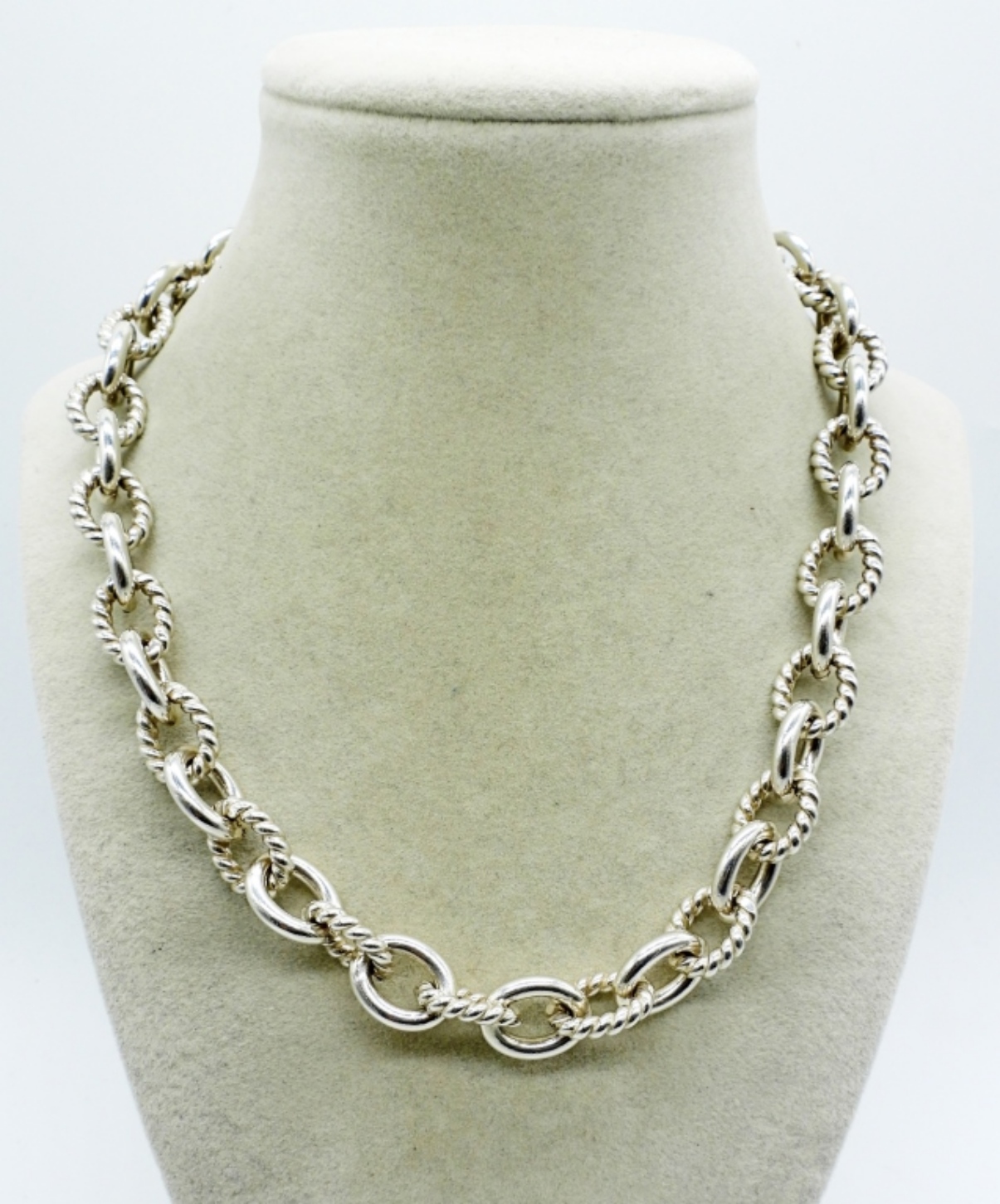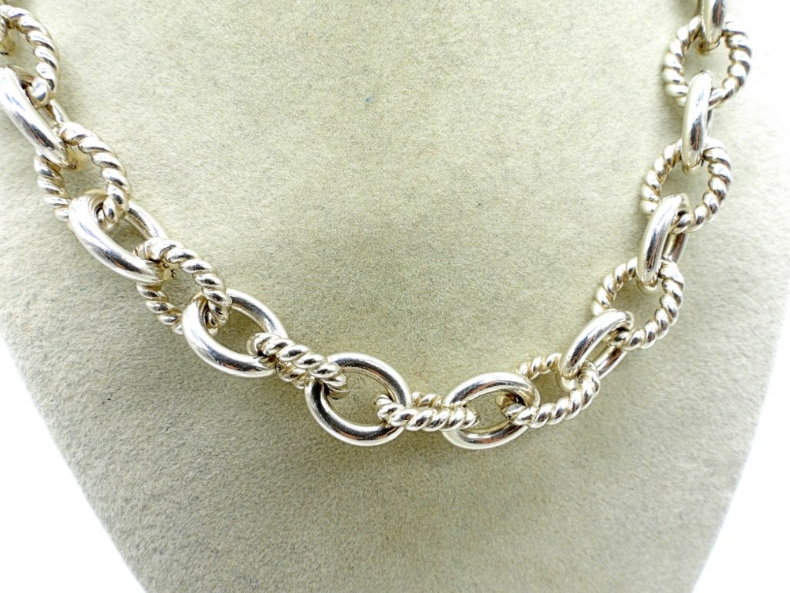 CAROLYN POLLACK, STERLING SILVER LINK CHAIN NECKLACE 18″ LONG. (77 DWT)