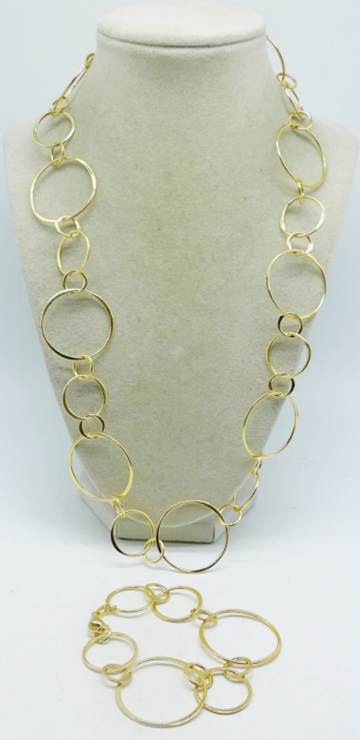 VINTAGE STERLING GOLD TONE MATCHING NECKLACE AND BRACELET. 7″ & 22″. (23.4 DWT)