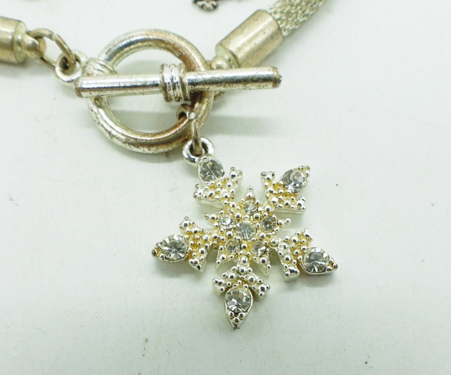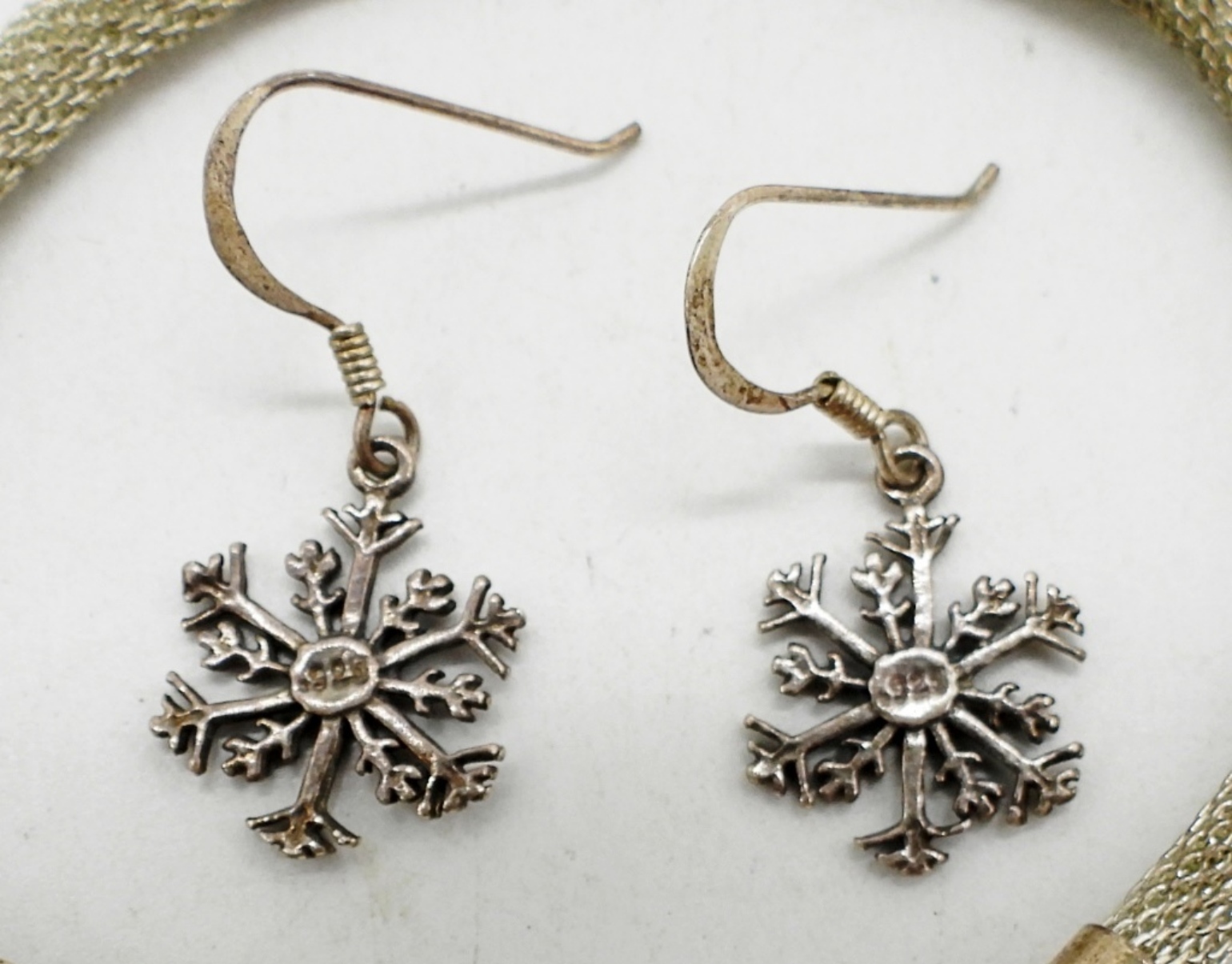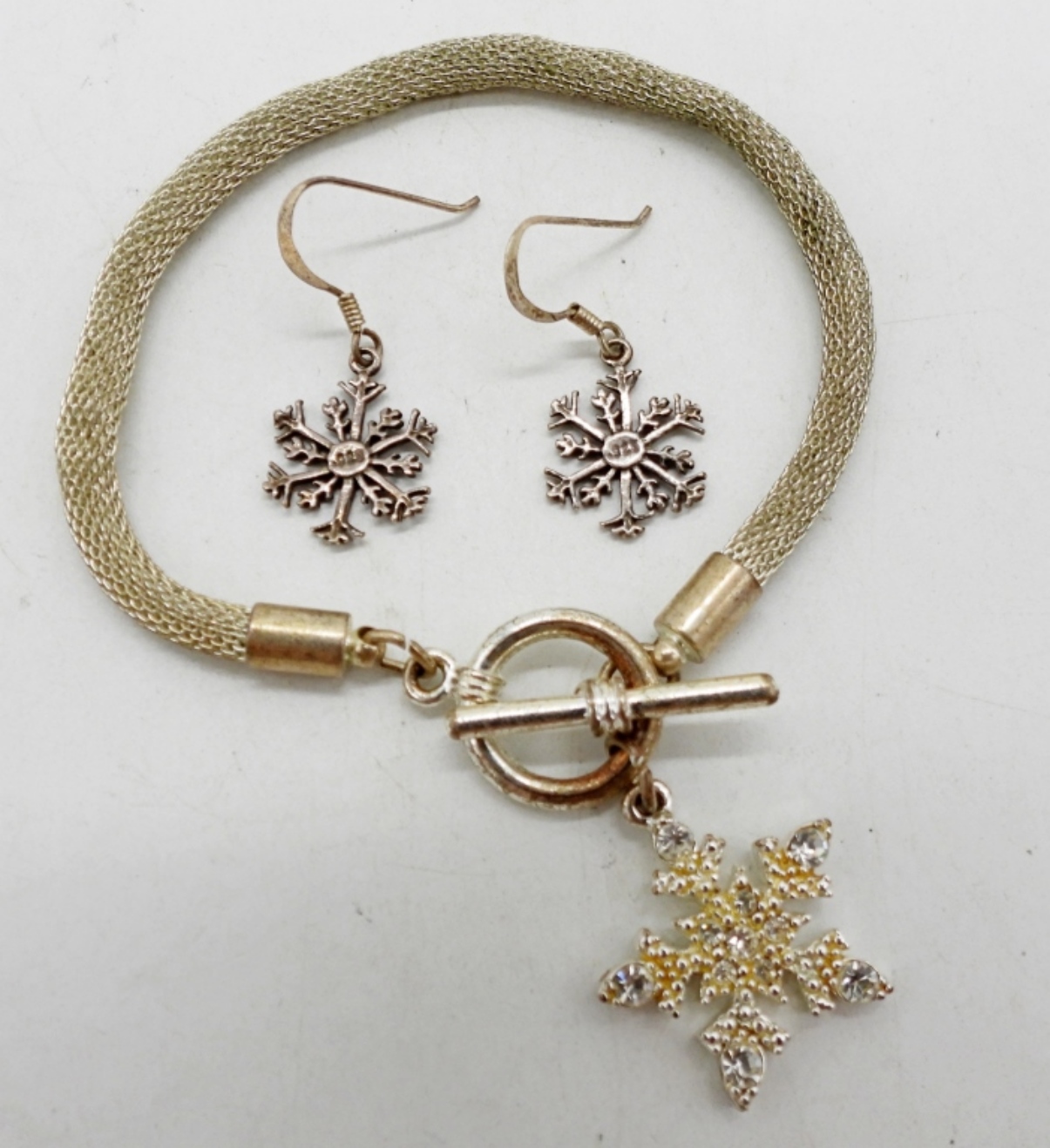 STERLING SNOWFLAKE BRACELET, 7.5″. PIERCED SNOWFLAKE EARRINGS. (8.1 DWT)