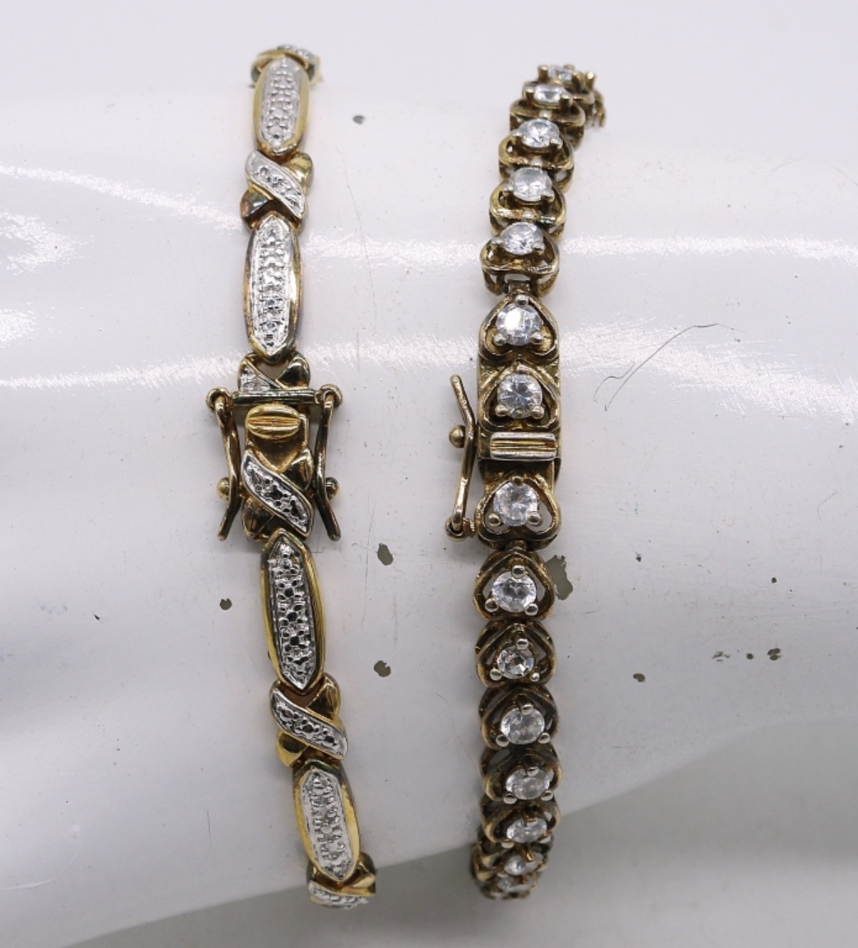 TWO STERLING, GOLD TONE SIMULATED DIAMOND BRACELETS. 7-7.5″ (14.3 DWT)