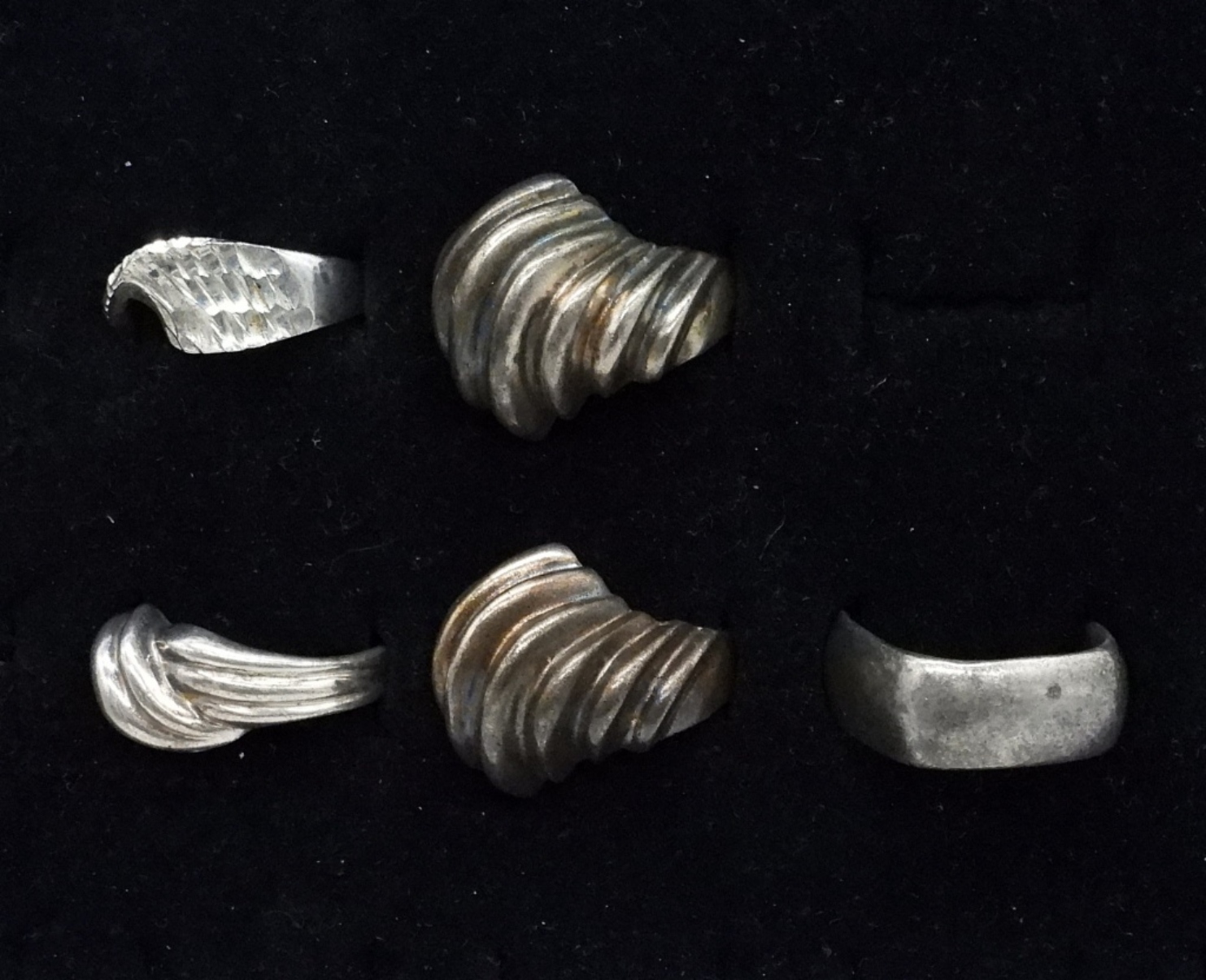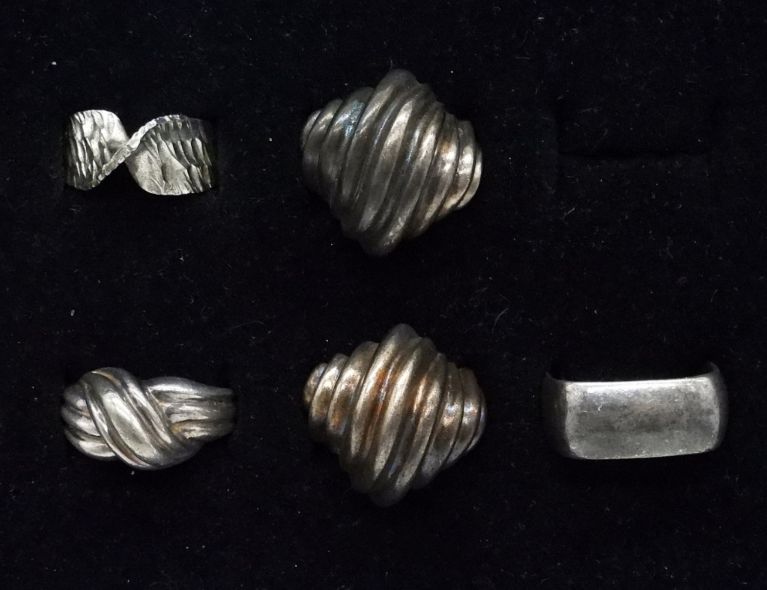 FIVE VINTAGE STERLING RINGS SIZES 7 & 8 (25 DWT)
