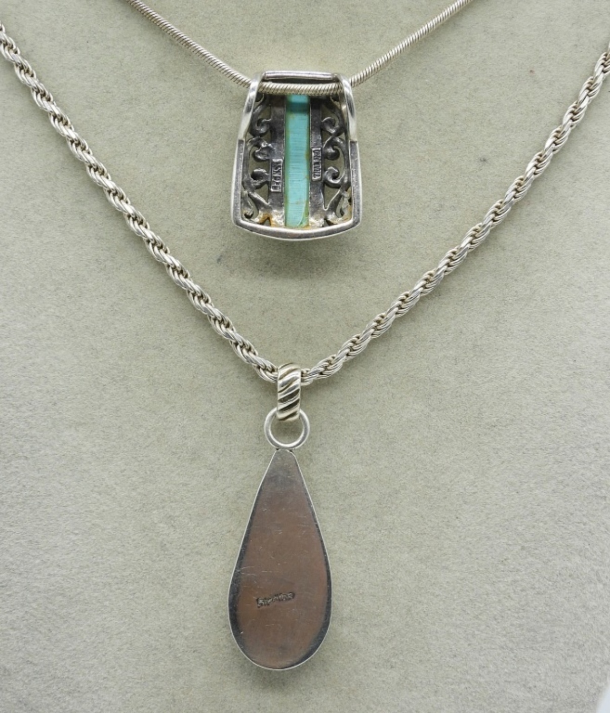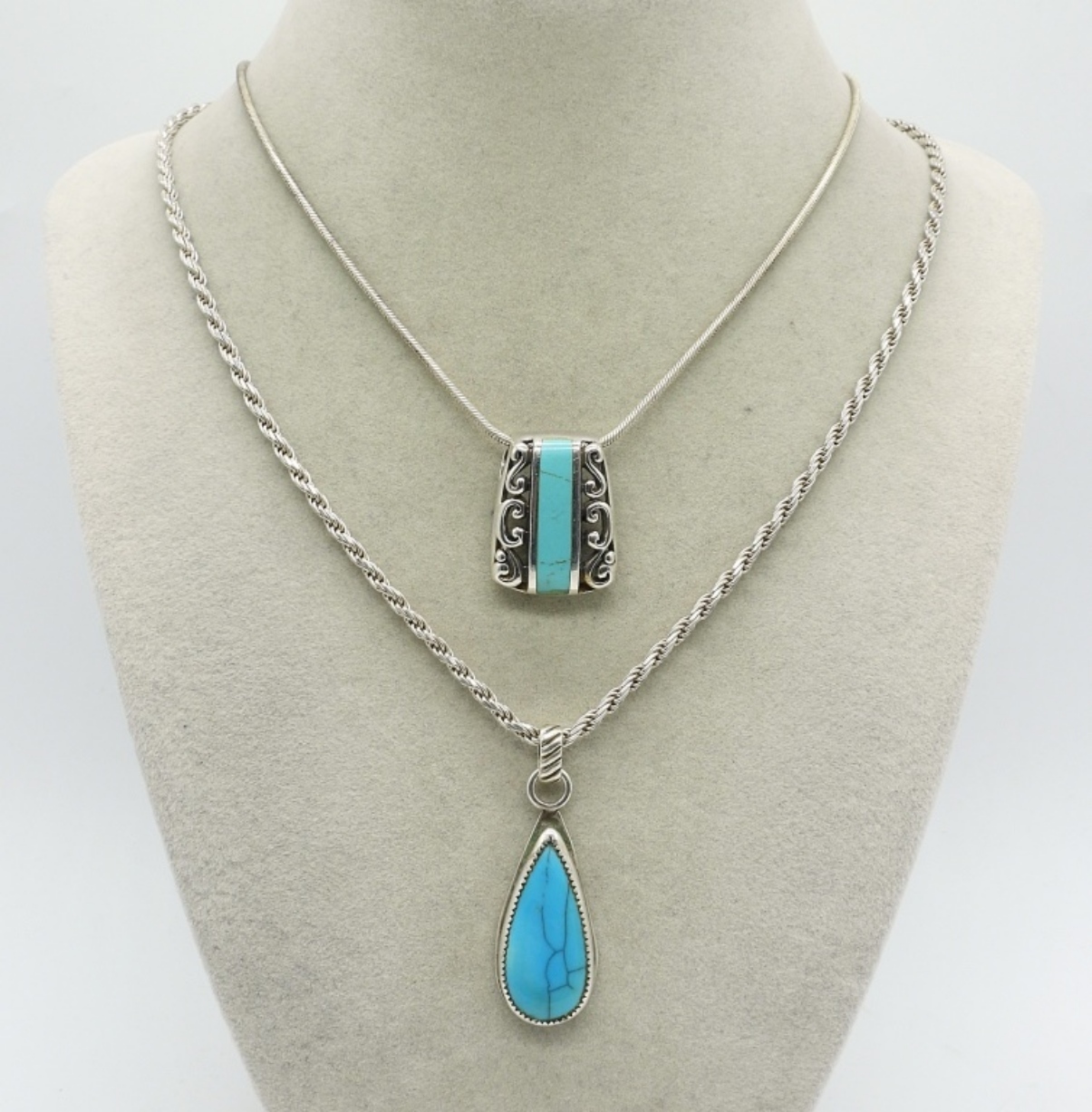 TWO STERLING TURQUOISE NECKLACES. 20″ & 24″ (24 DWT)