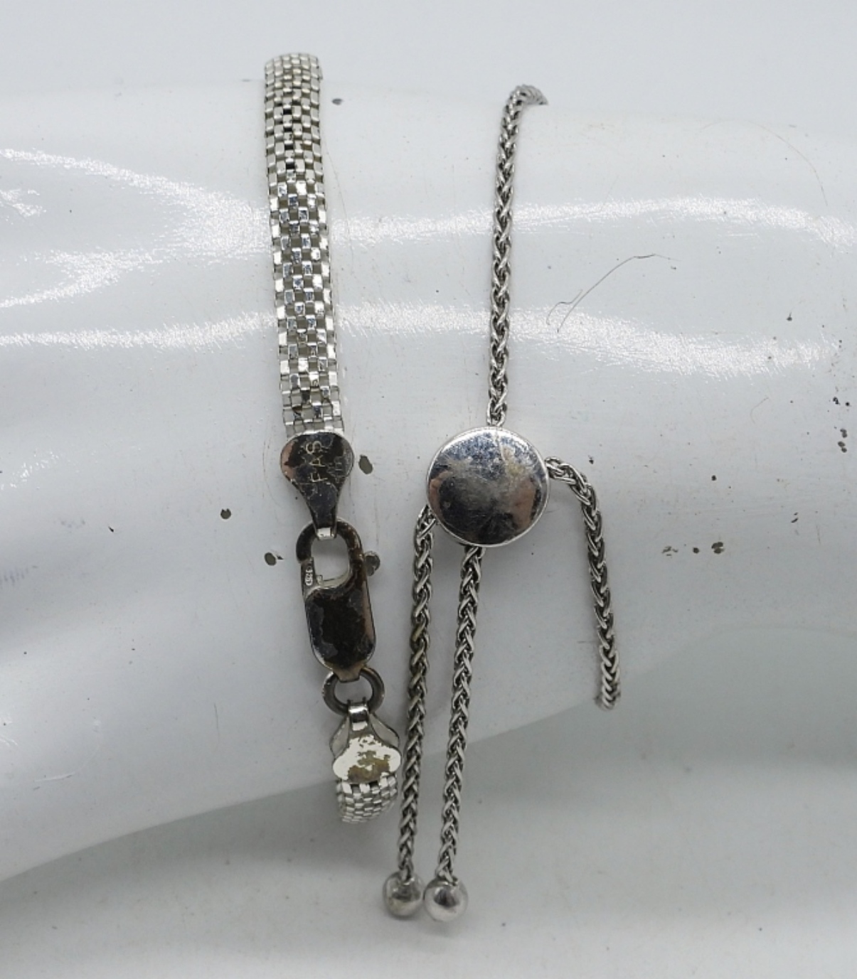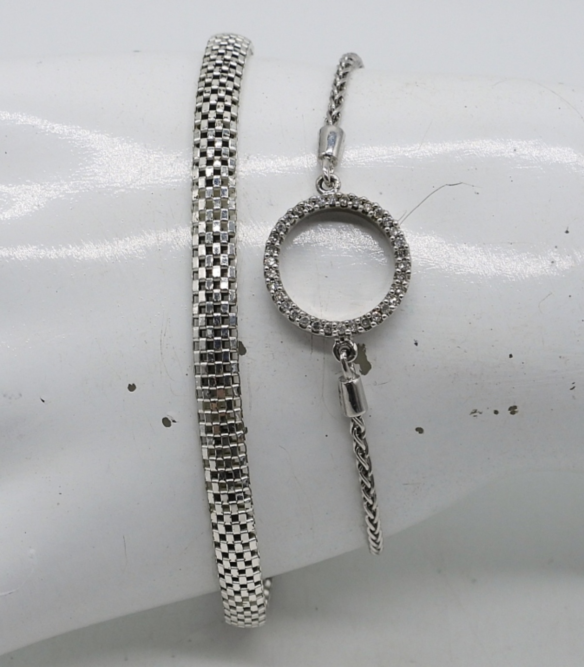 MOISSANITE CIRCLE PENDANT STERLING BRACELET, ADJUSTABLE. STERLING 8″ BRACELET. (7.2 DWT)
