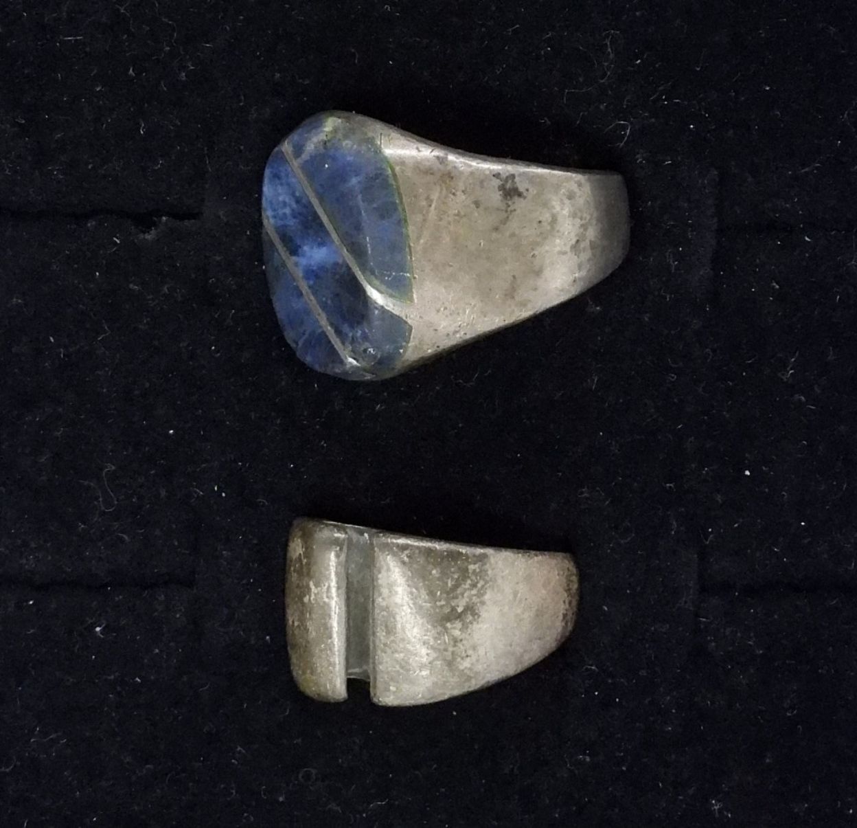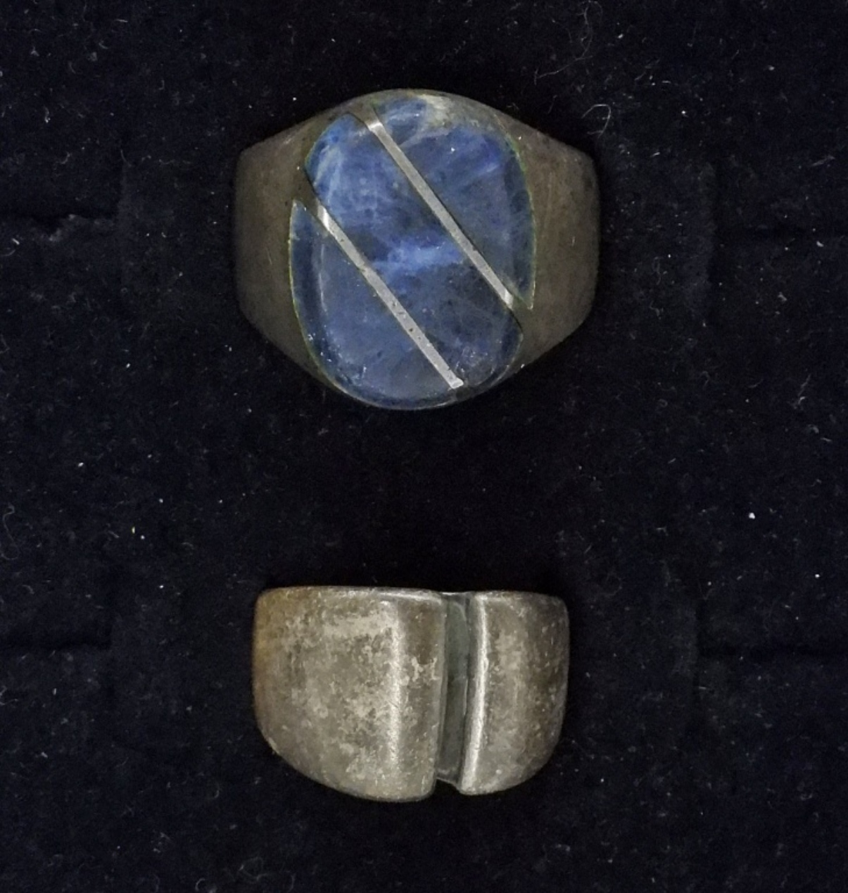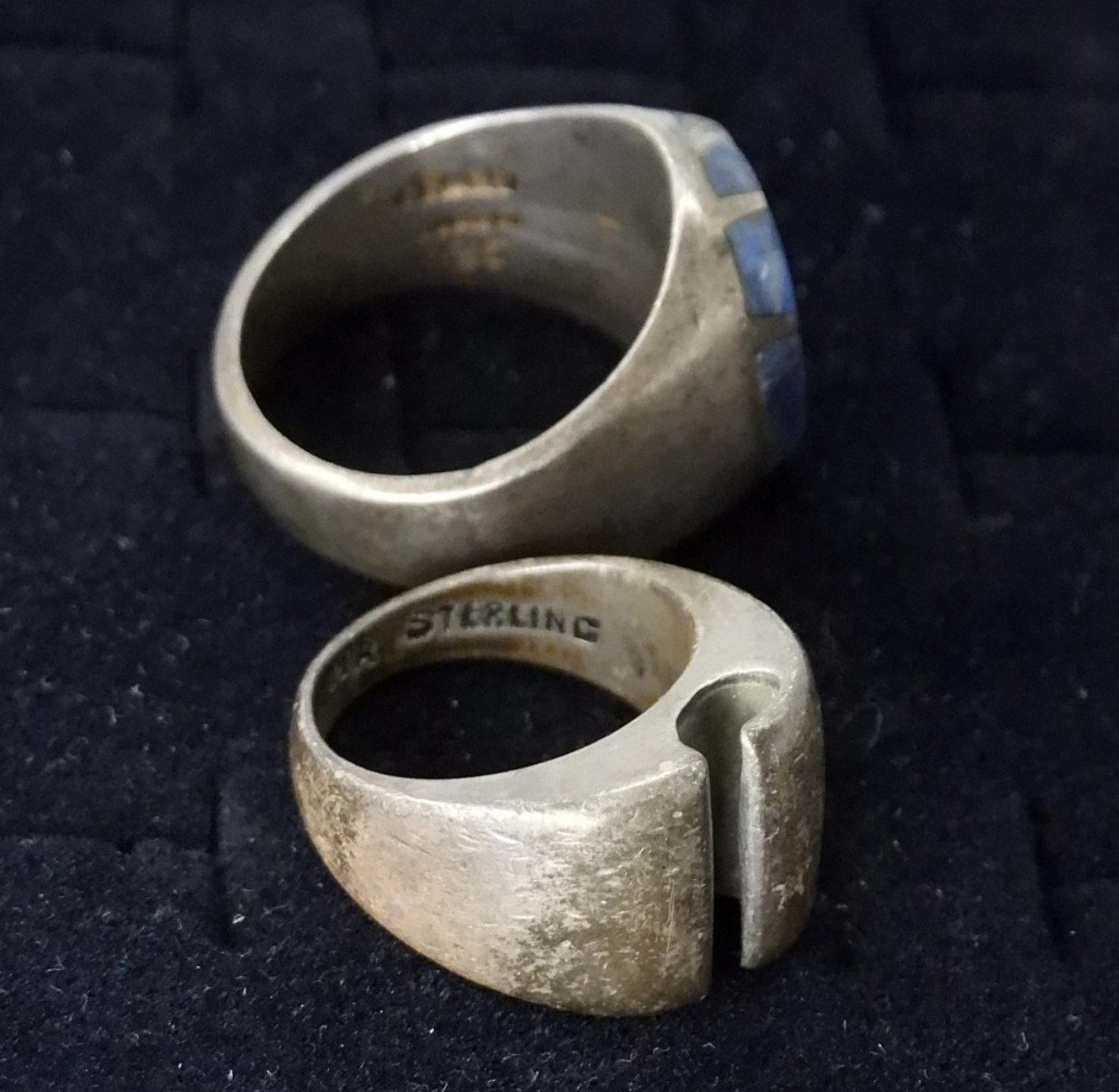 STERLING MEXICO RINGS, SODALITE GEMSTONE TAXCO MEXICO RING, SIZE 12. SIZE 7 STERLING MEXICO RING. (19.8 DWT)