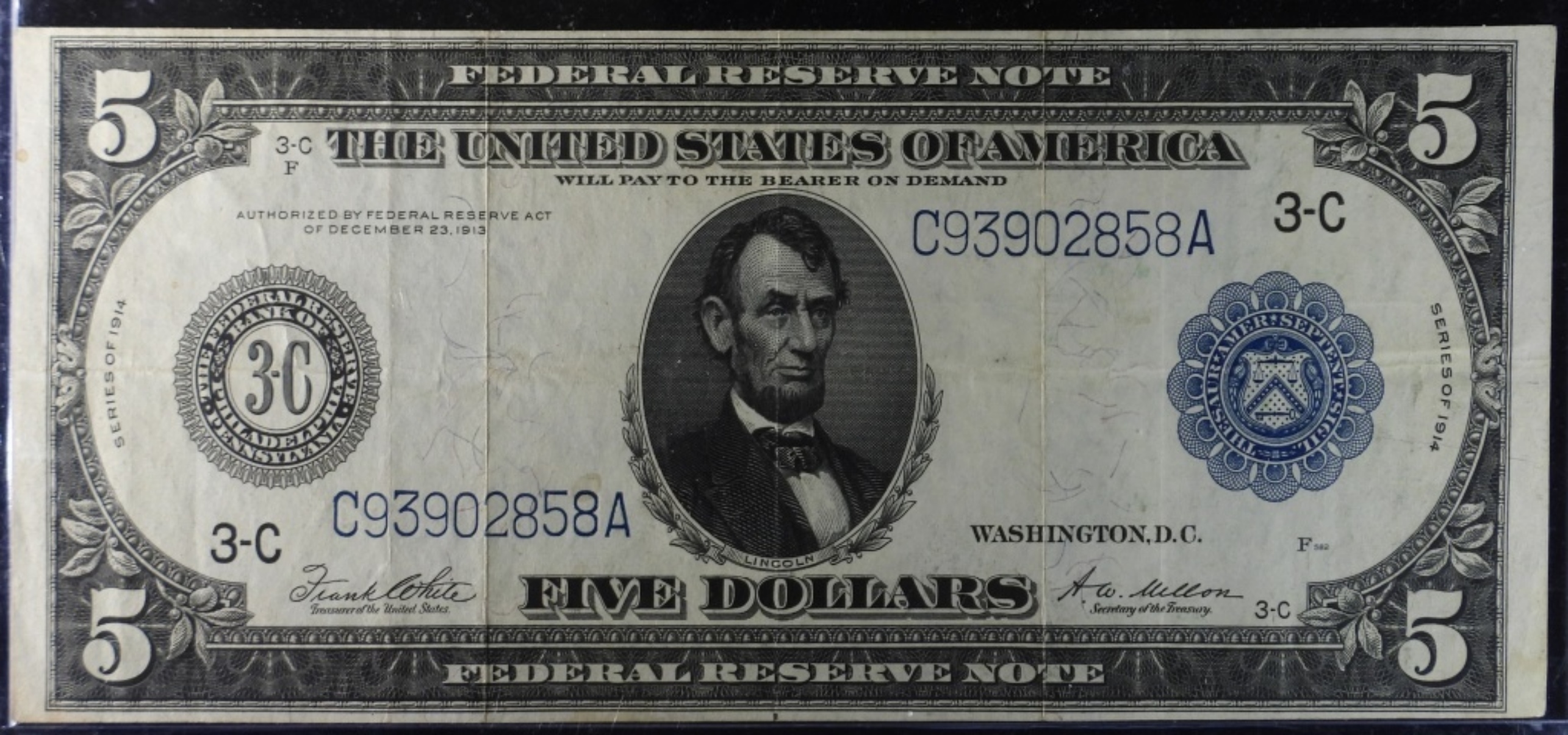 This note was among the first issued by the newly established federal Reserve System in response to financial crises like the panic of 1907