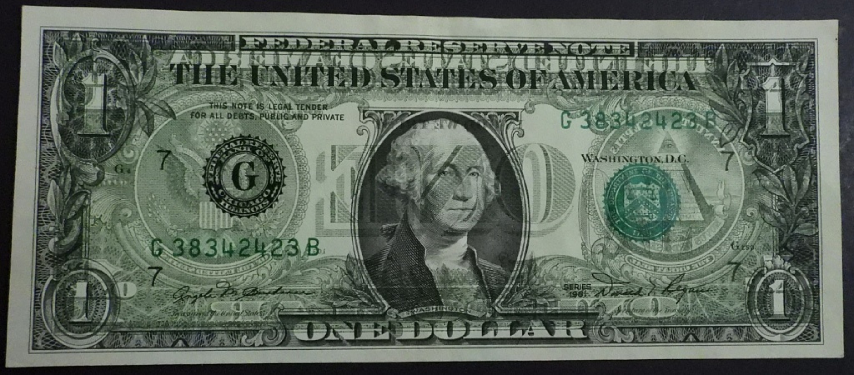 1981 $1 Dollar Bill. Back to Face Ink Transfer Error. Impressive.