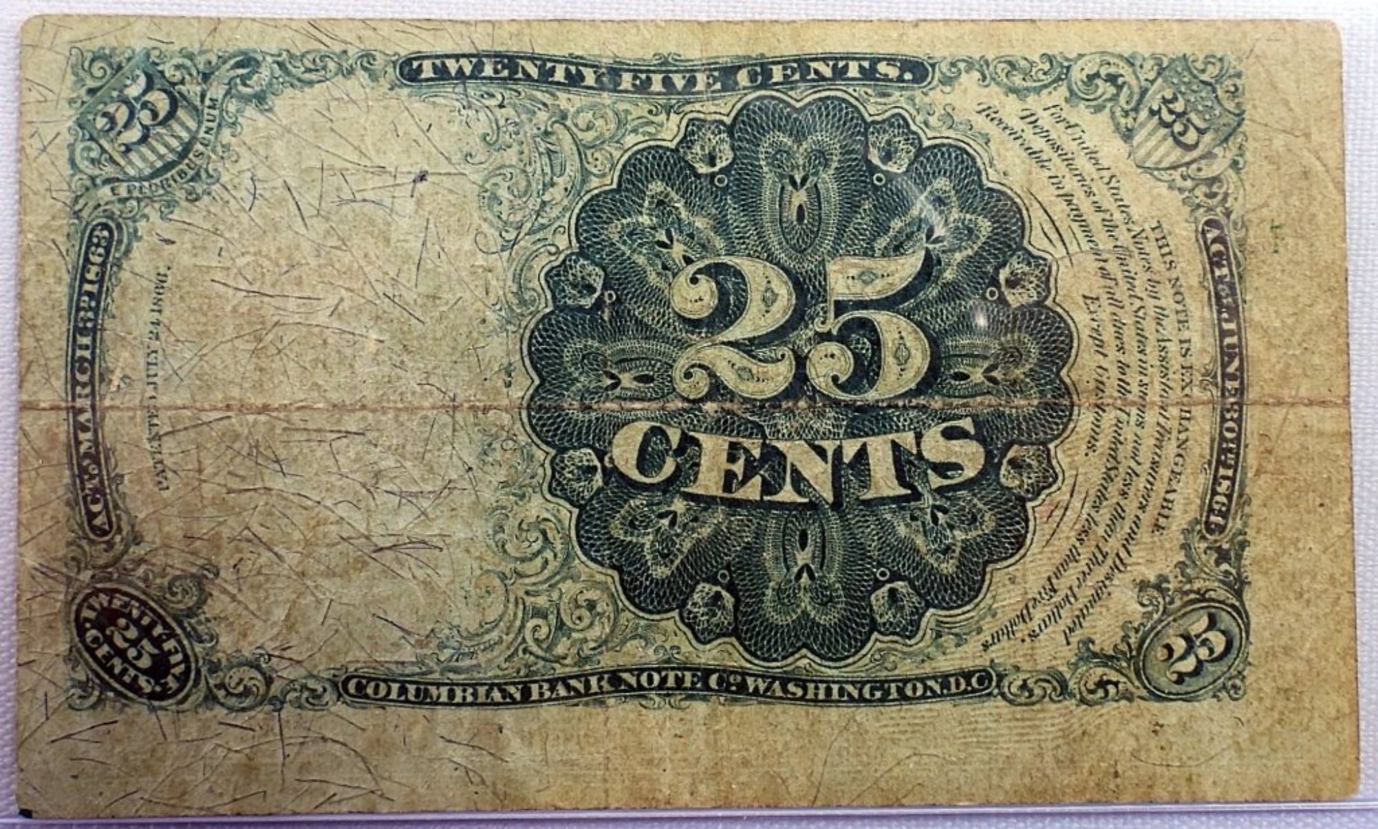 Series of 1874, Twenty Five Cent Fractional Currency.