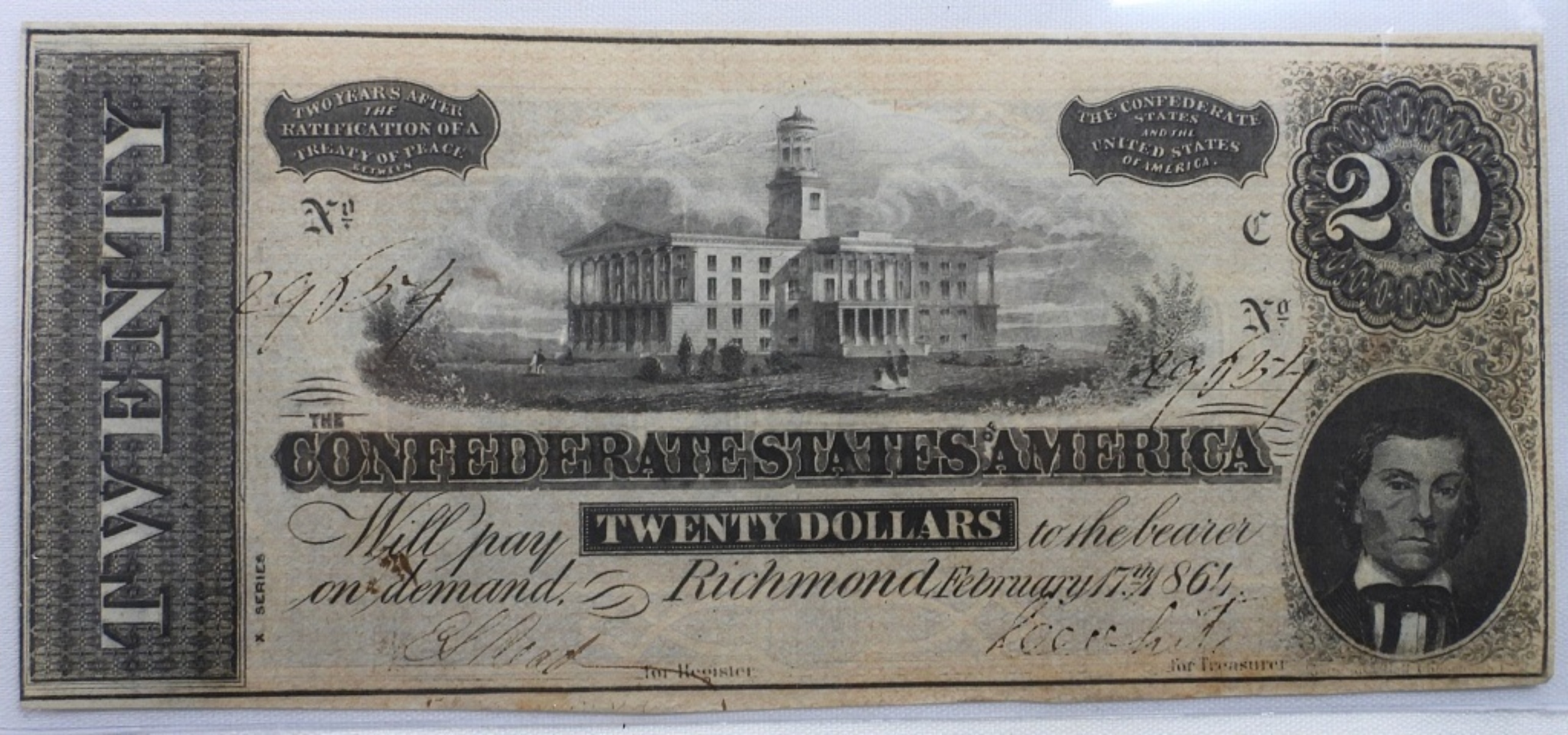 1864 Confederate States of America $20 Bill. Marked “X Series”. No 29654
