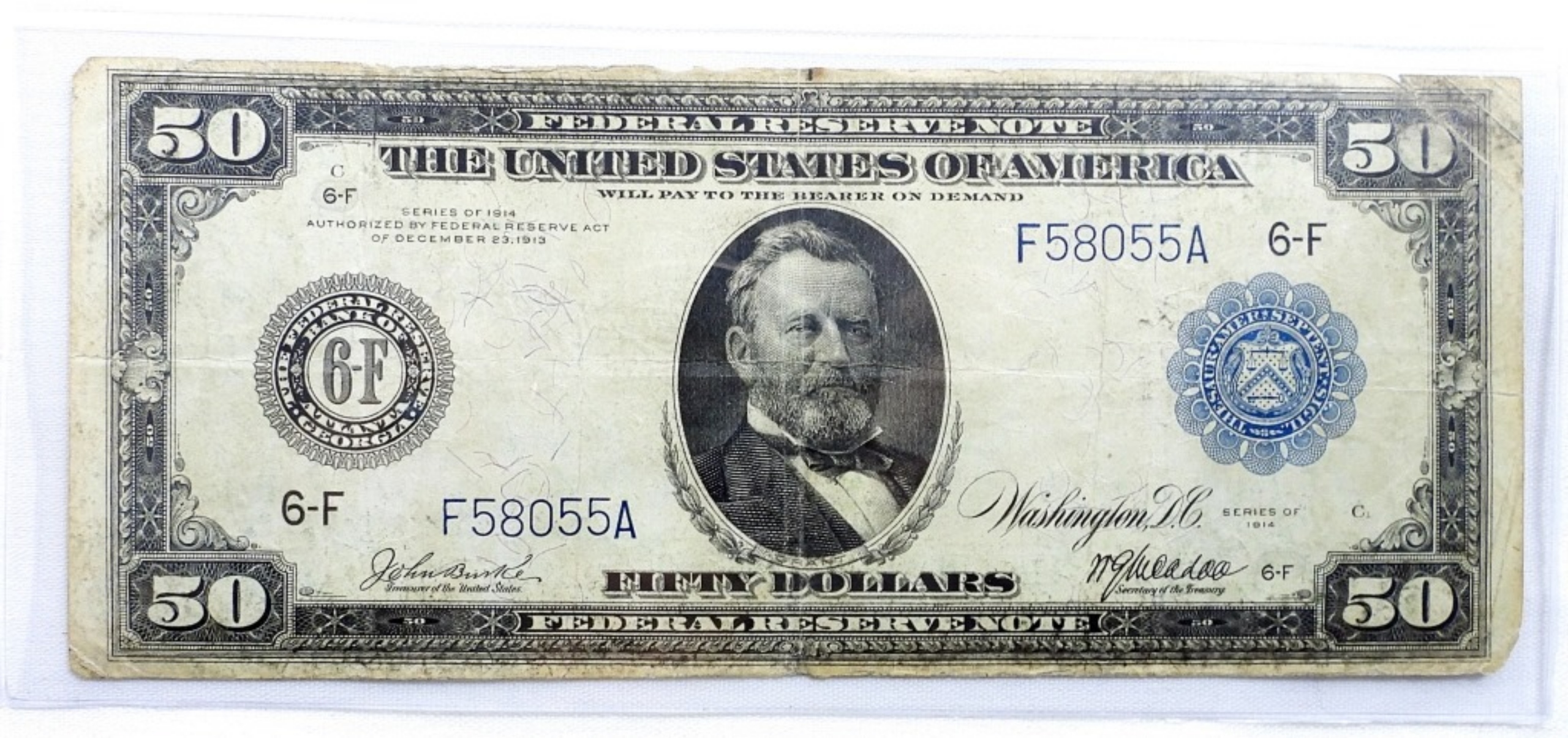 1914 – $50 federal reserve note. 6-F. Serial # F58055A