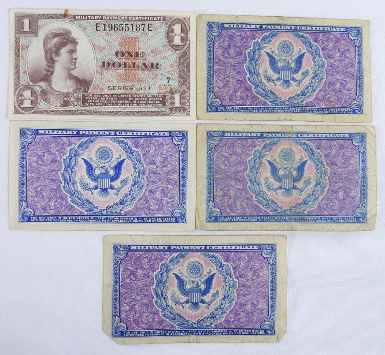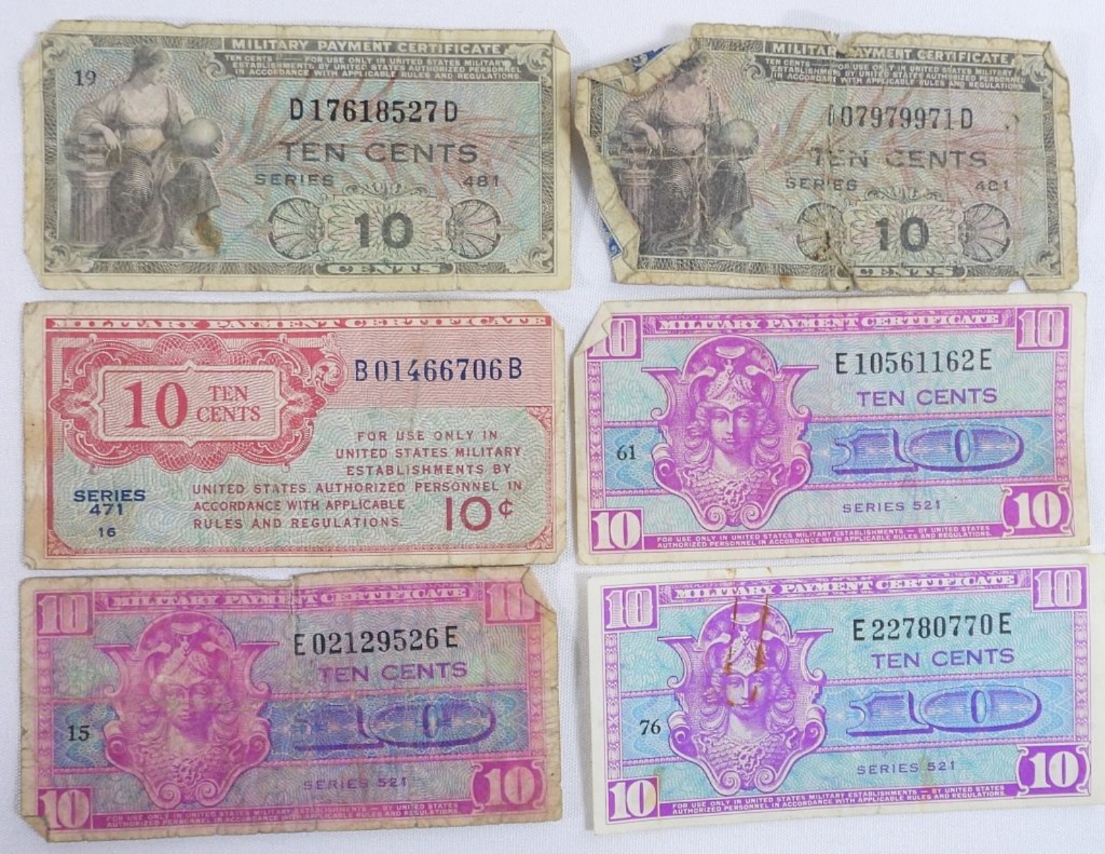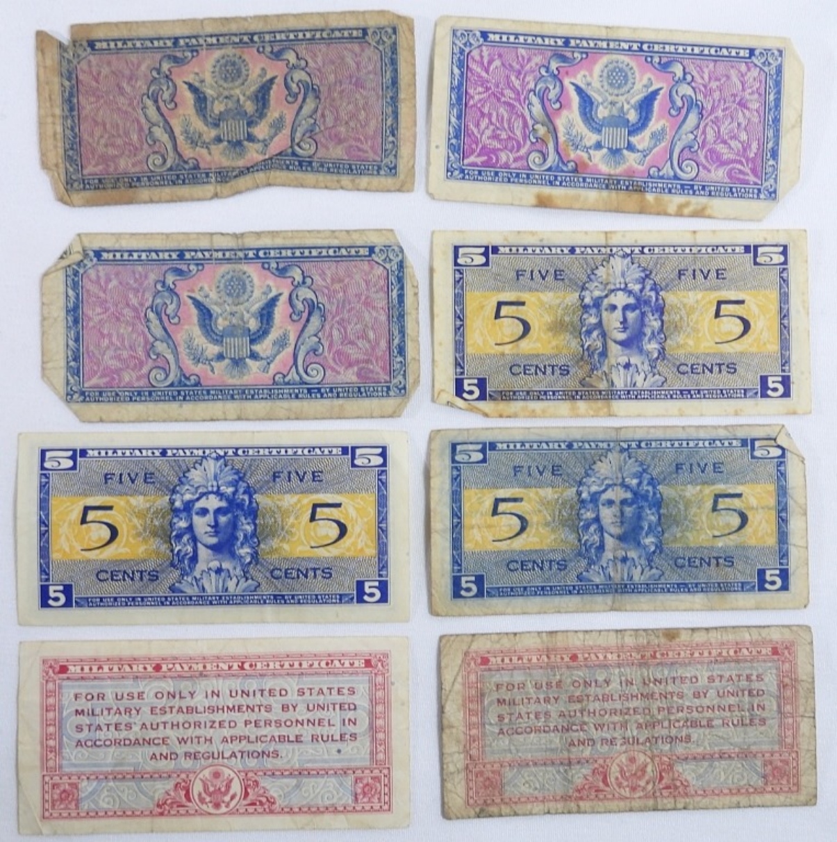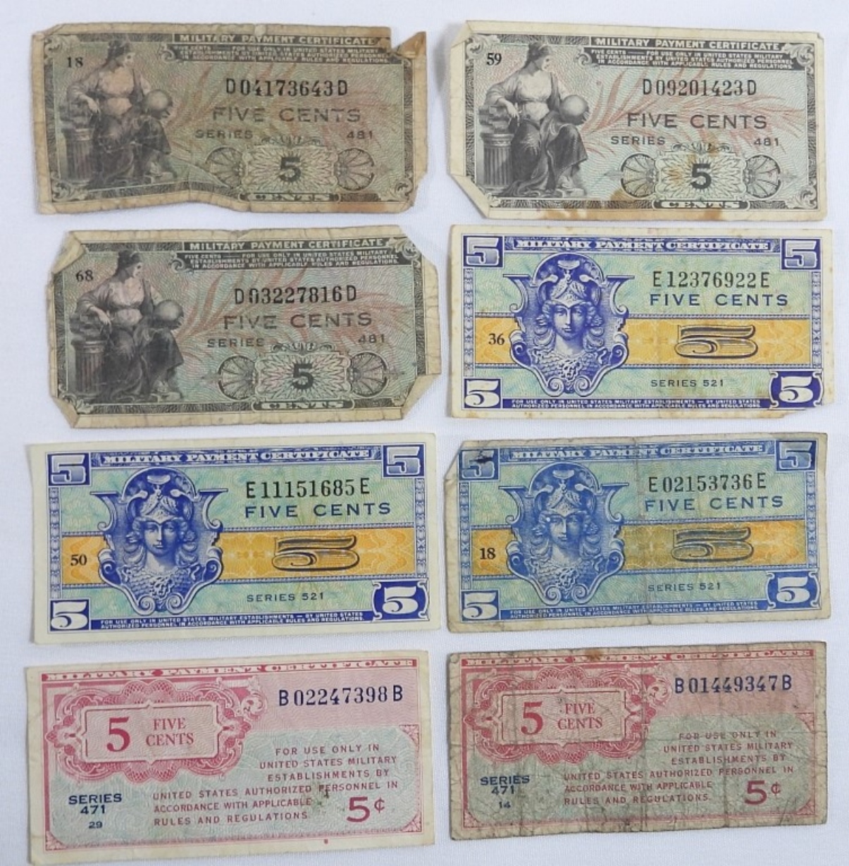 24 U.S. Military Payment Certificates. Ranging from 5 Cents to 1 Dollar.