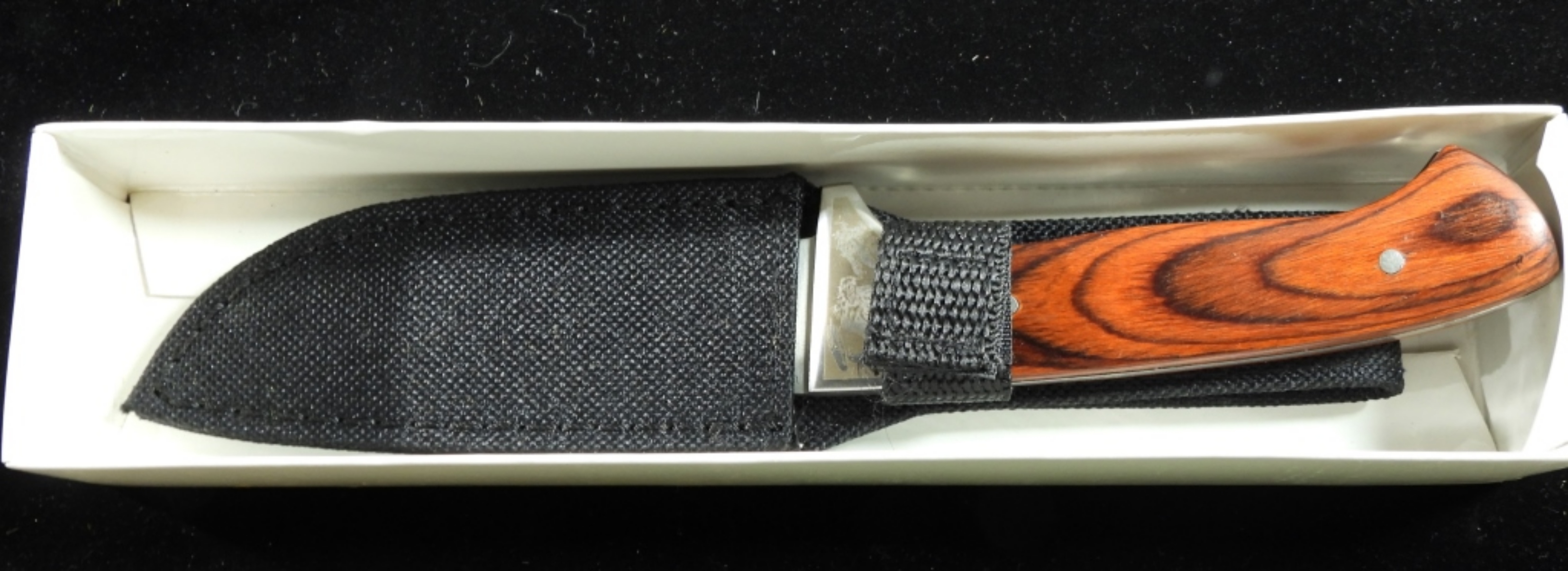 This item is 8.25 inches and comes with nylon sheath in a box like new