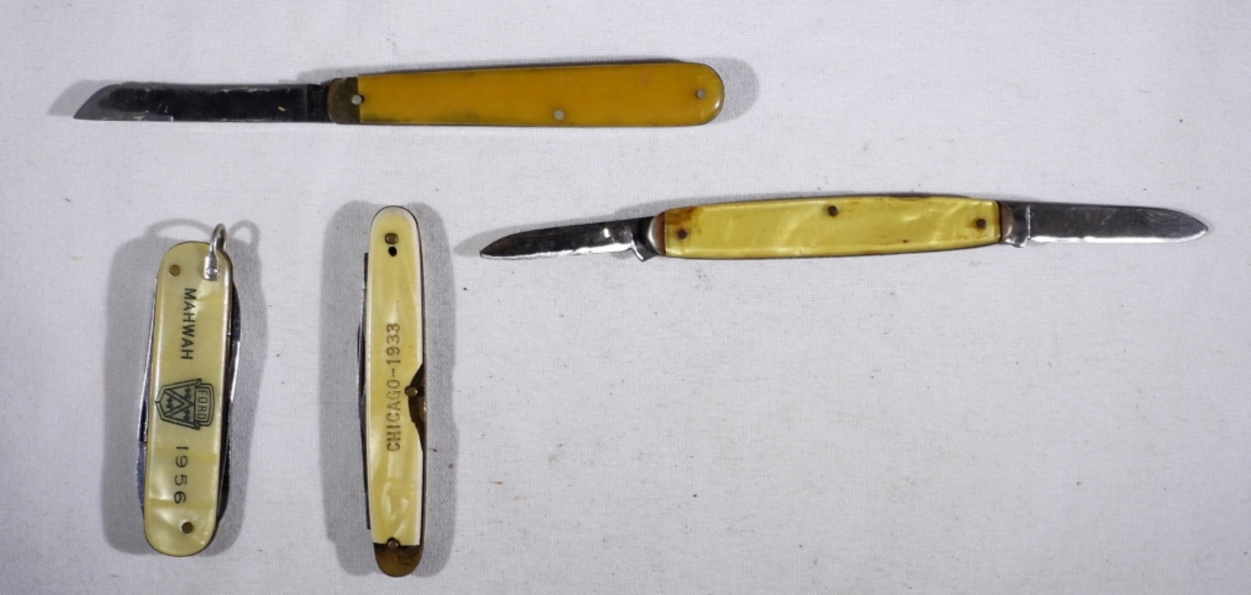 1933 Chicago, 1956 Ford, New York fair antique knife, (4) vintage antique knives- Various conditions