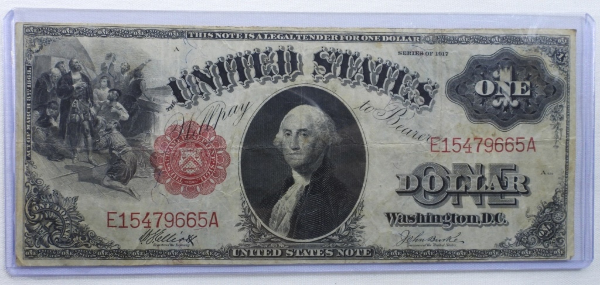 1917 Large One Dollar, United States Note. Serial # E15479665A