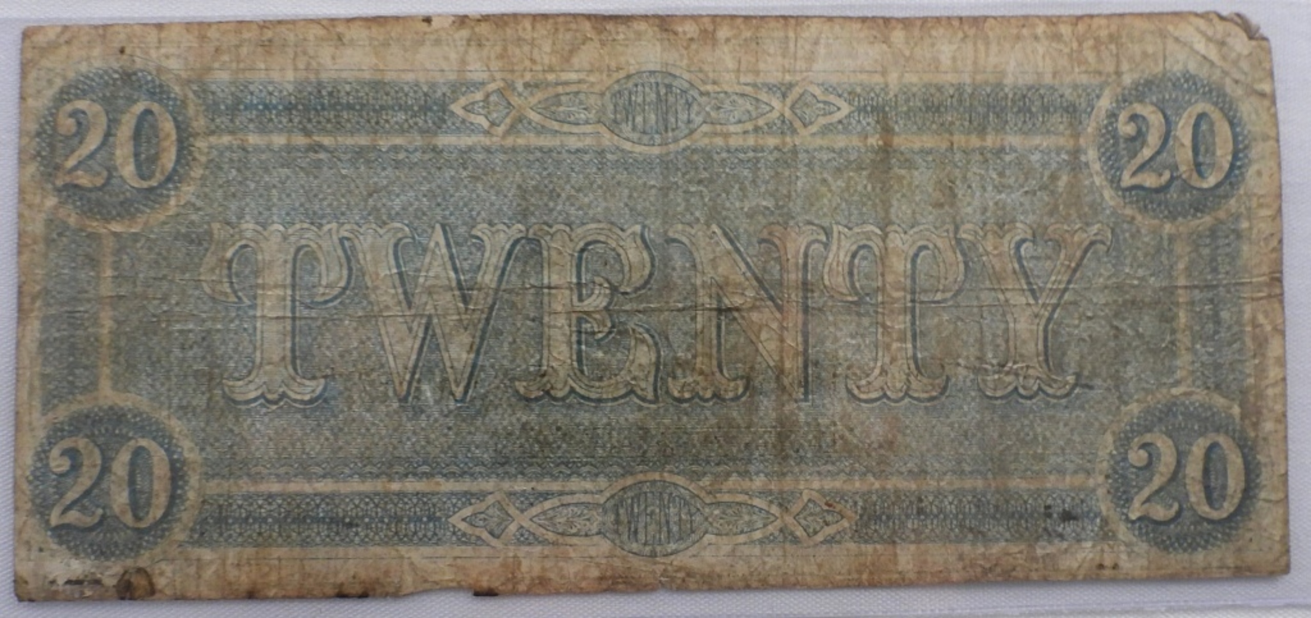 Confederate States of America $20 Large Bill. 1864. Cannot read the Number. Low Quality