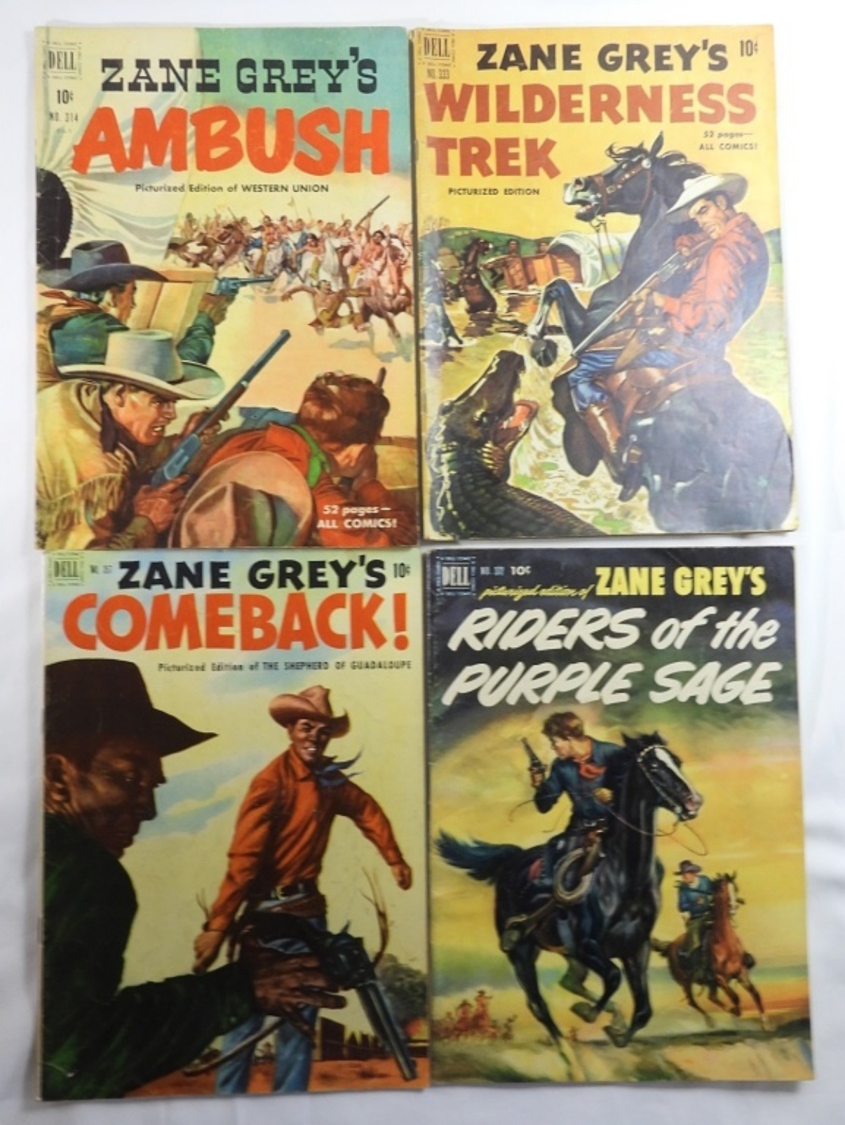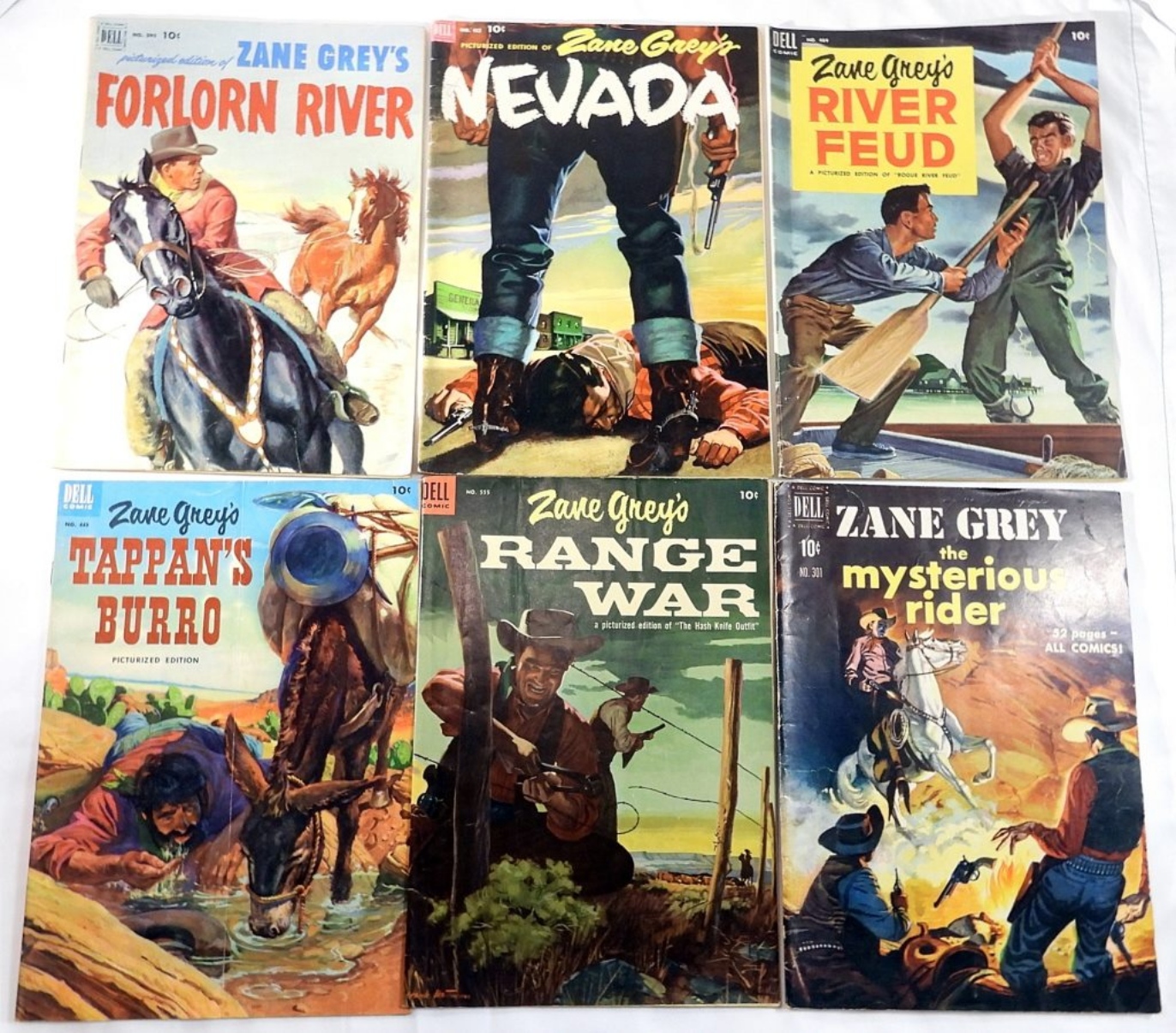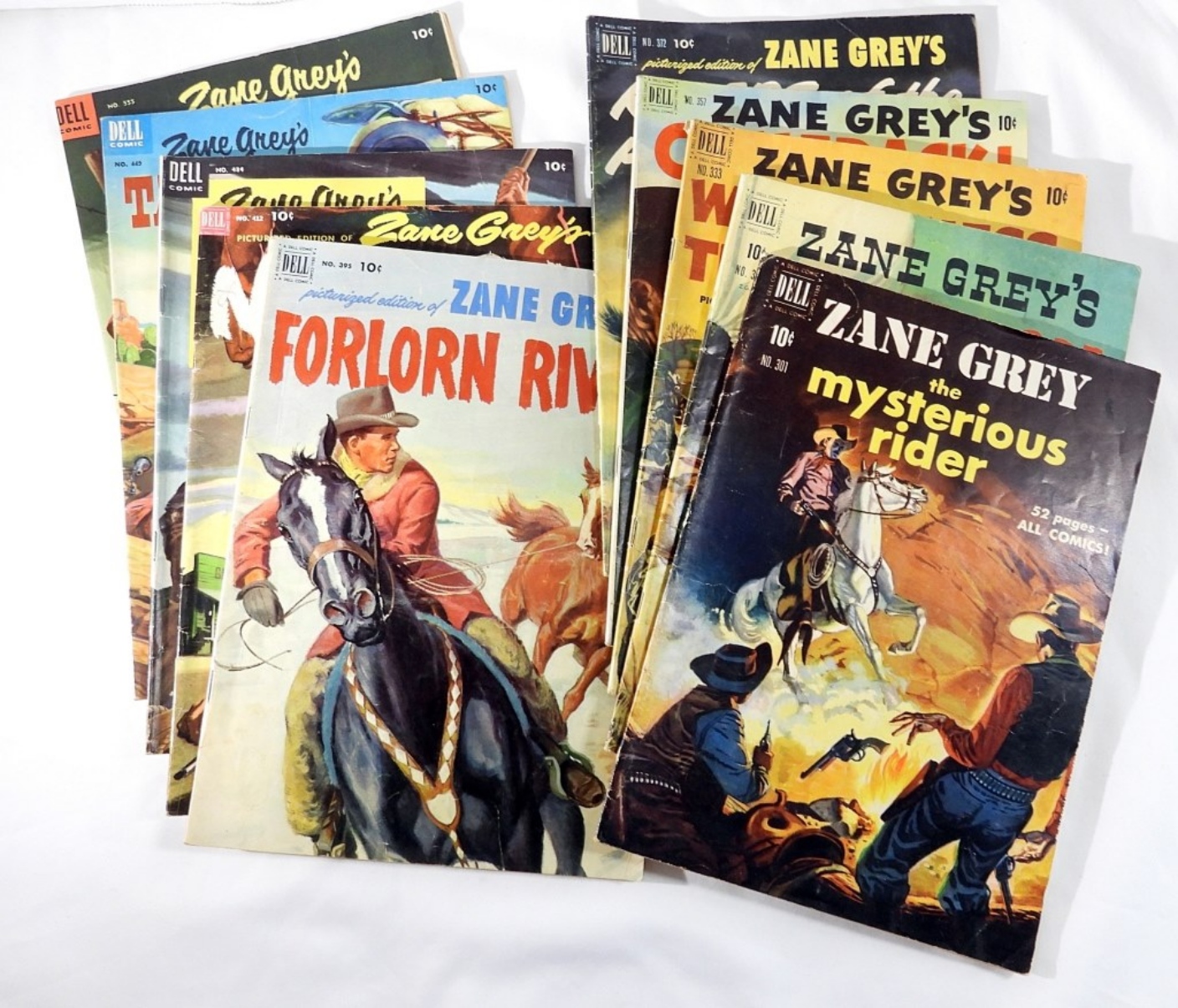 10 Dell, Zane Grey 10 cent comic books. Issues 301, 314, 333, 357, 372, 395, 412, 484, 449, 555. G / VG