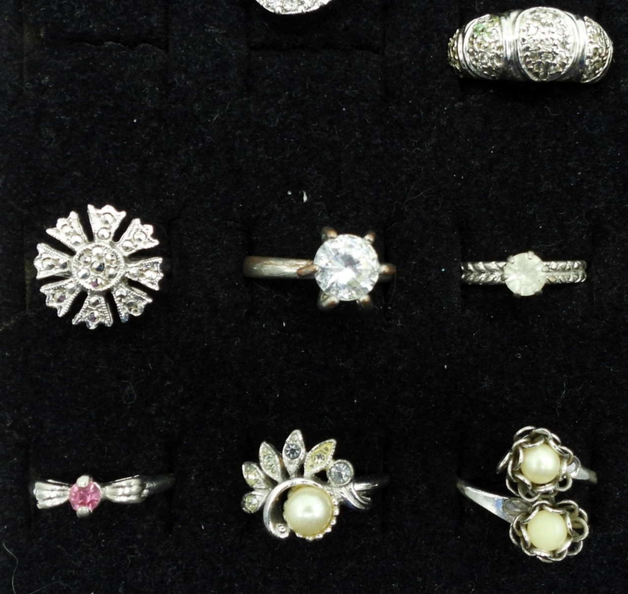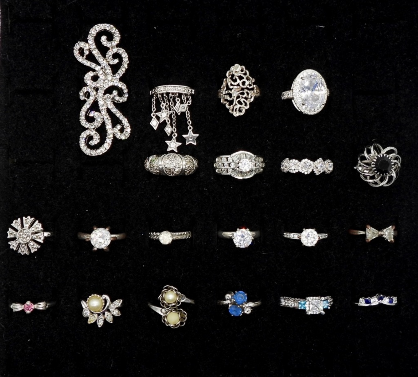 variety of sizes, faux pearls, faux diamonds