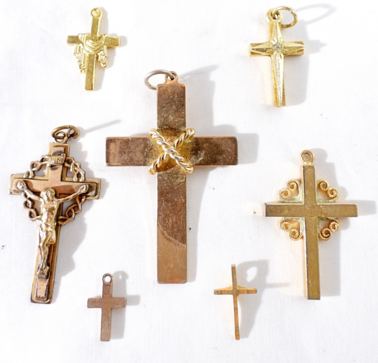 7 Gold cross necklace charms all a little different