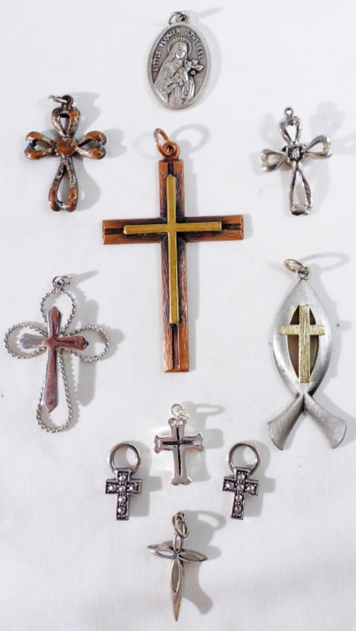 A variety of 10 religious necklace charms