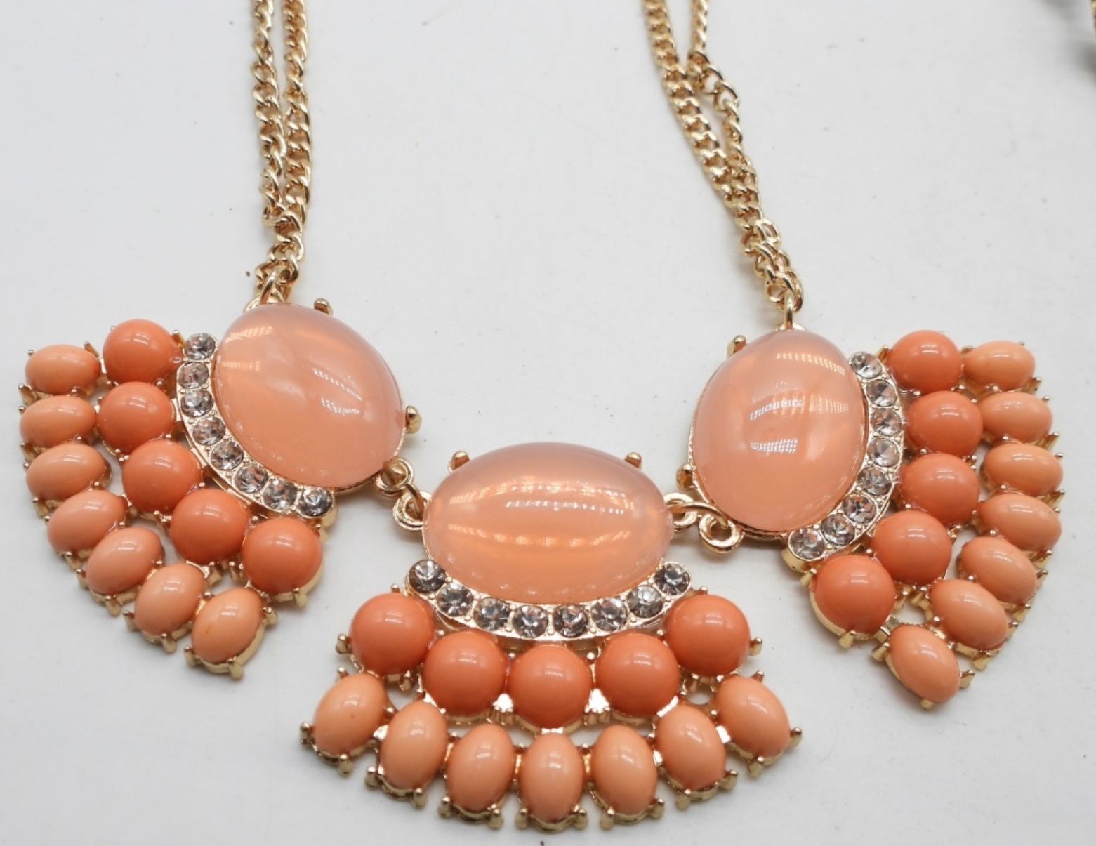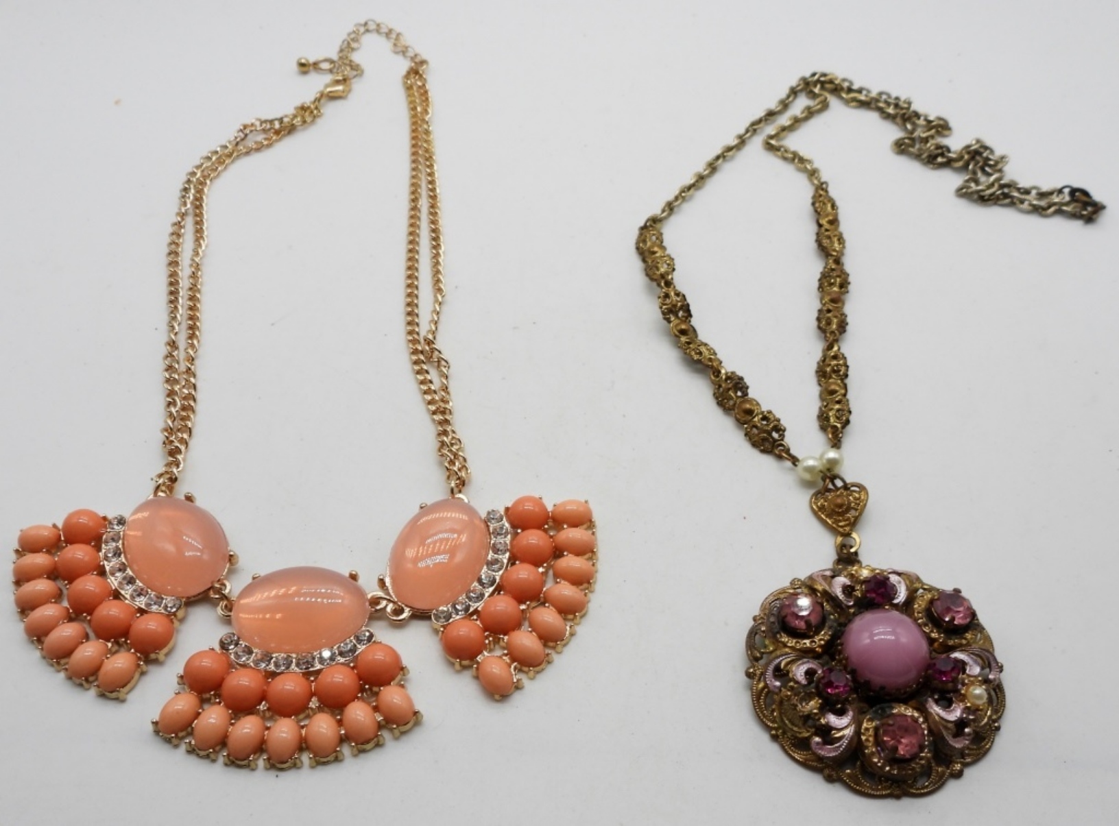 1 has purple beads. The other has a peach colored beads