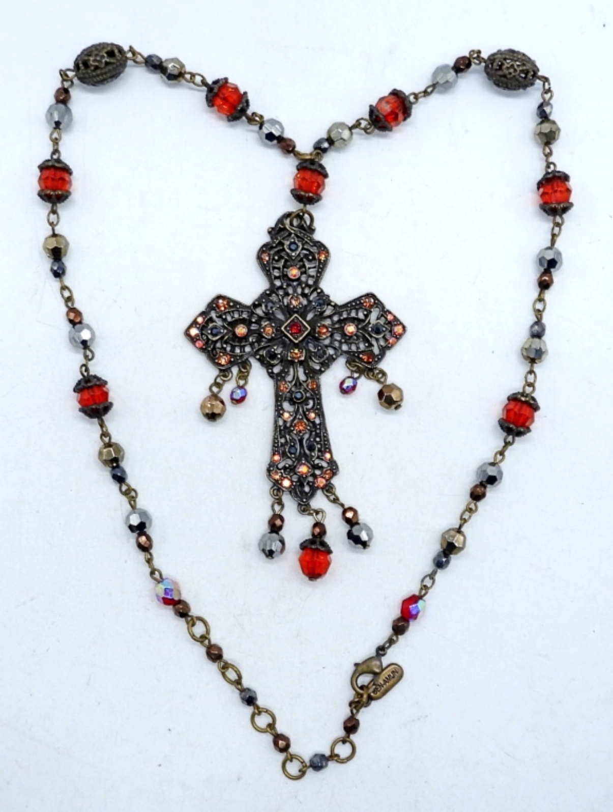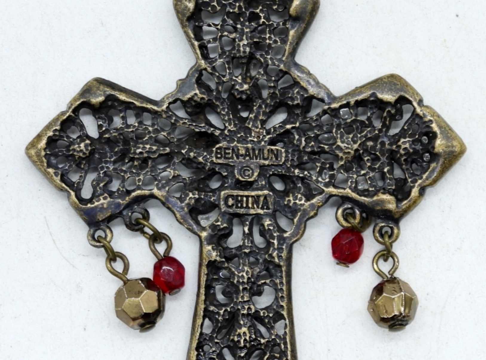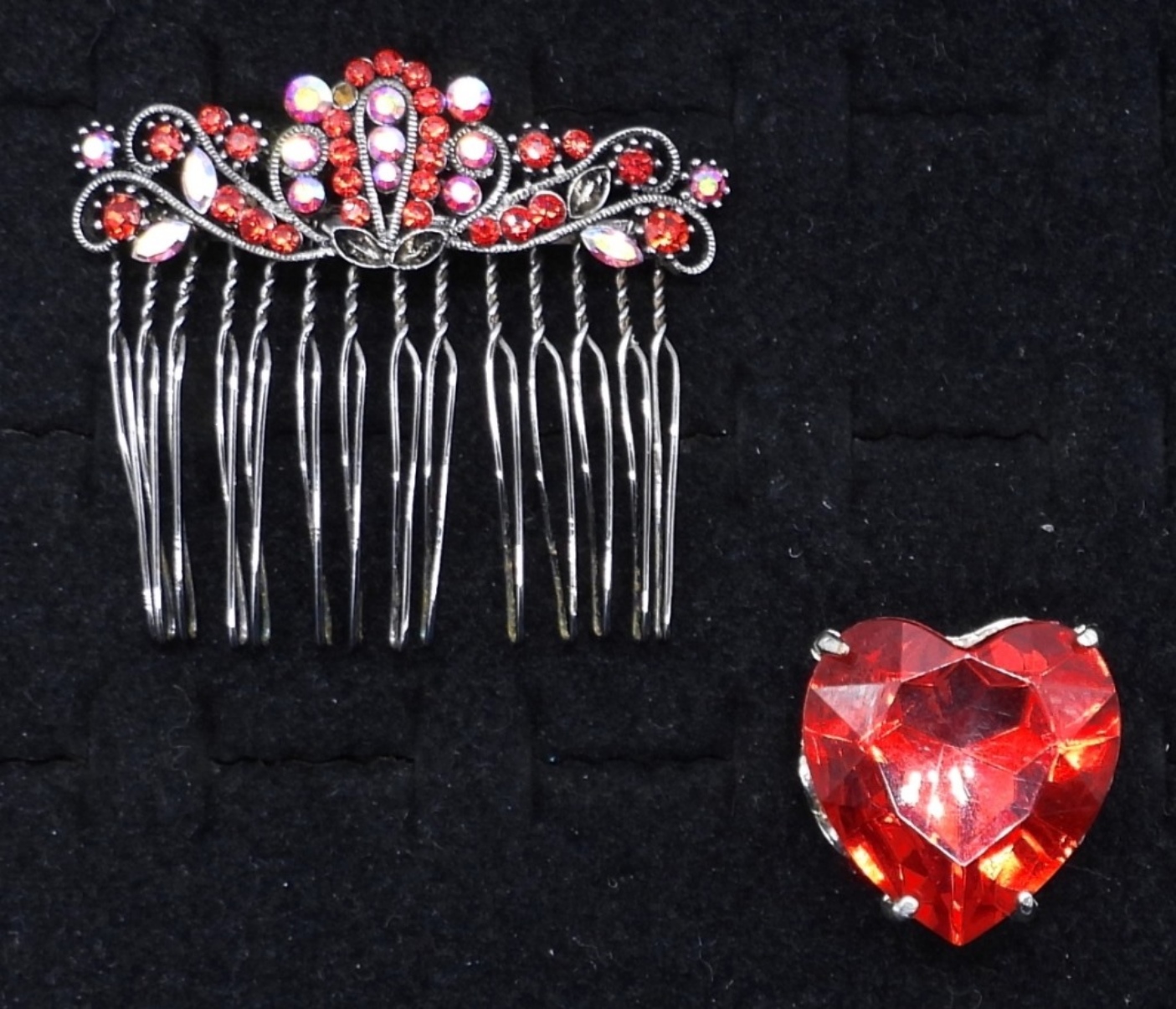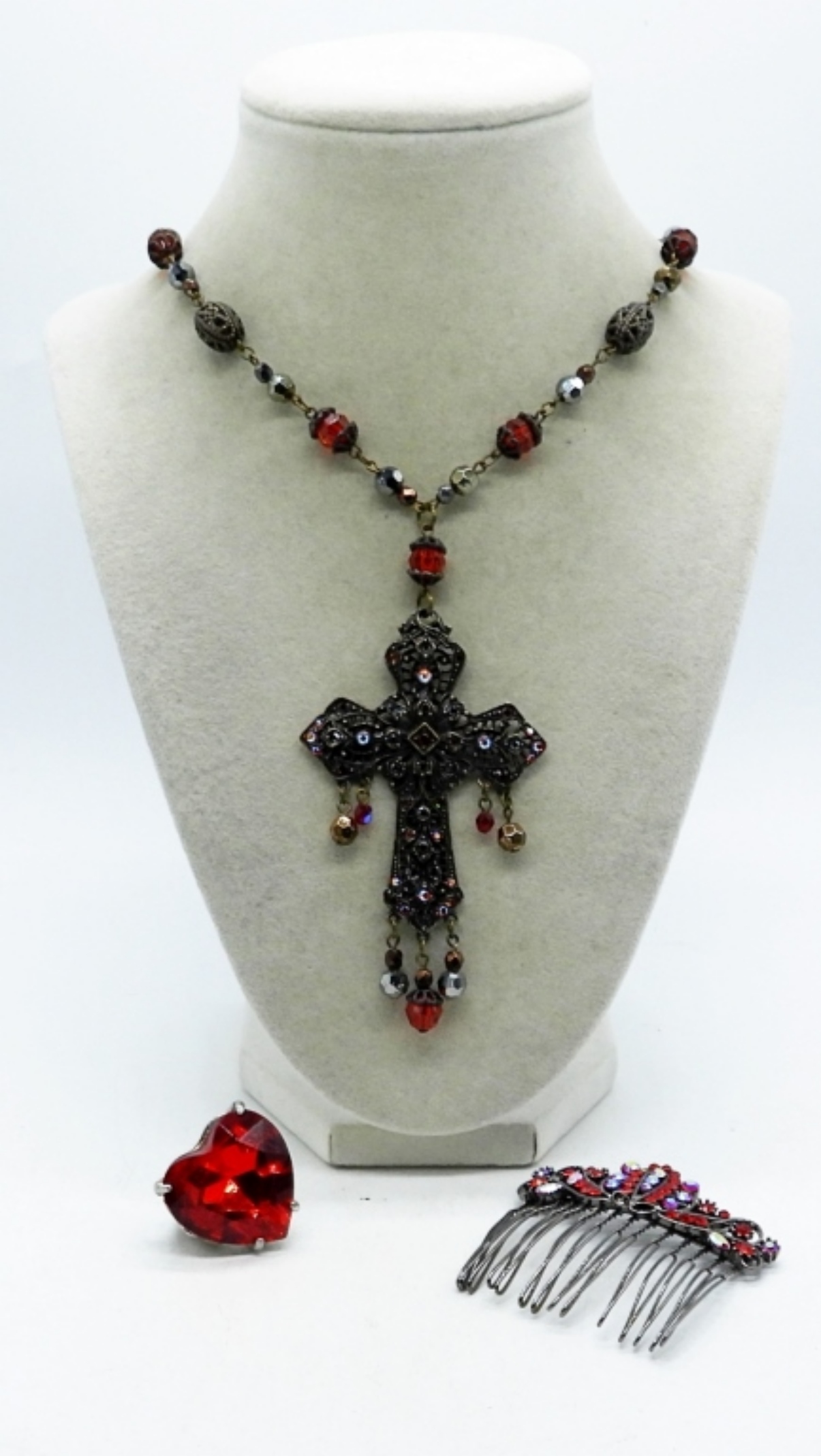 gothic-style cross, hair comb and ring