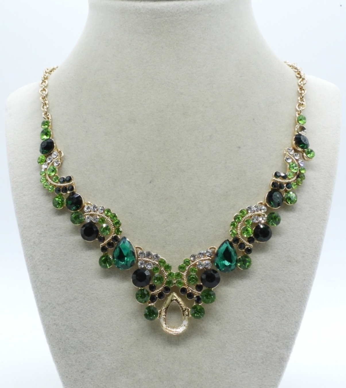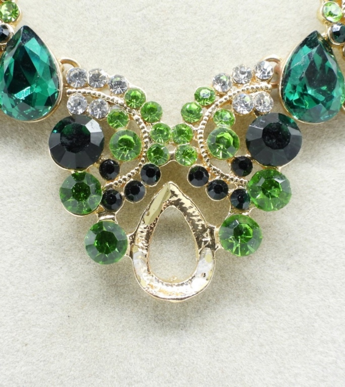 missing gem in the center, gold-toned chain