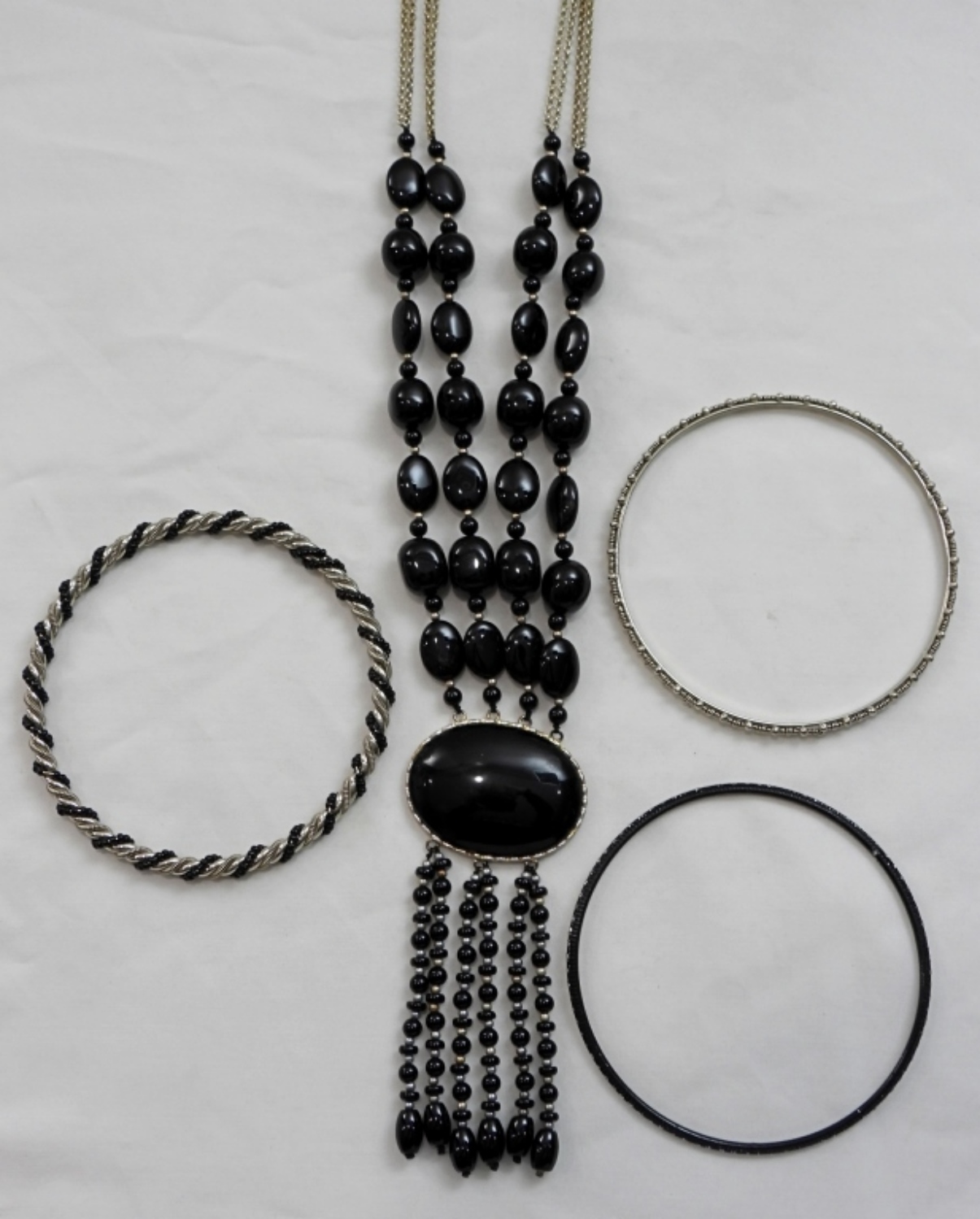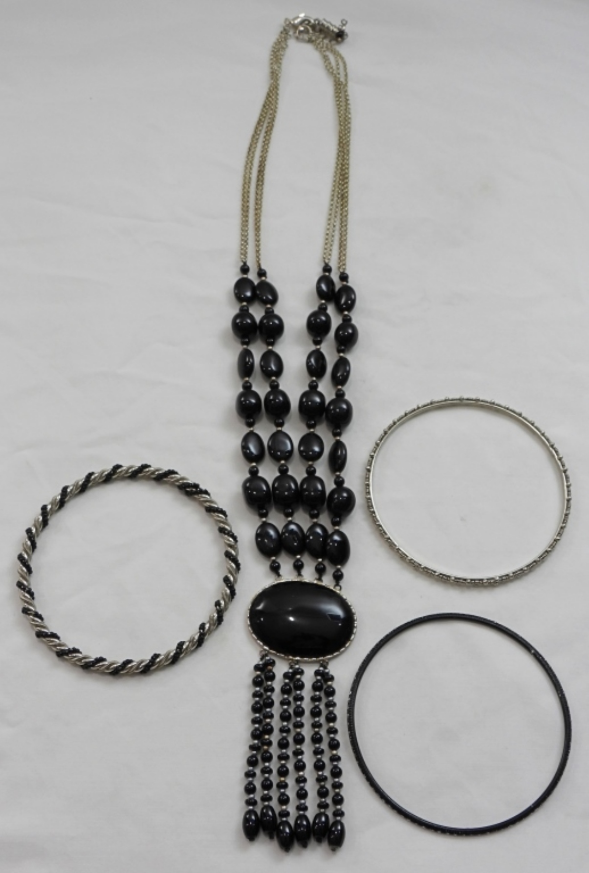 Gorgeous black bracelet / necklace set. 3 bracelets and 1 black stone necklace.