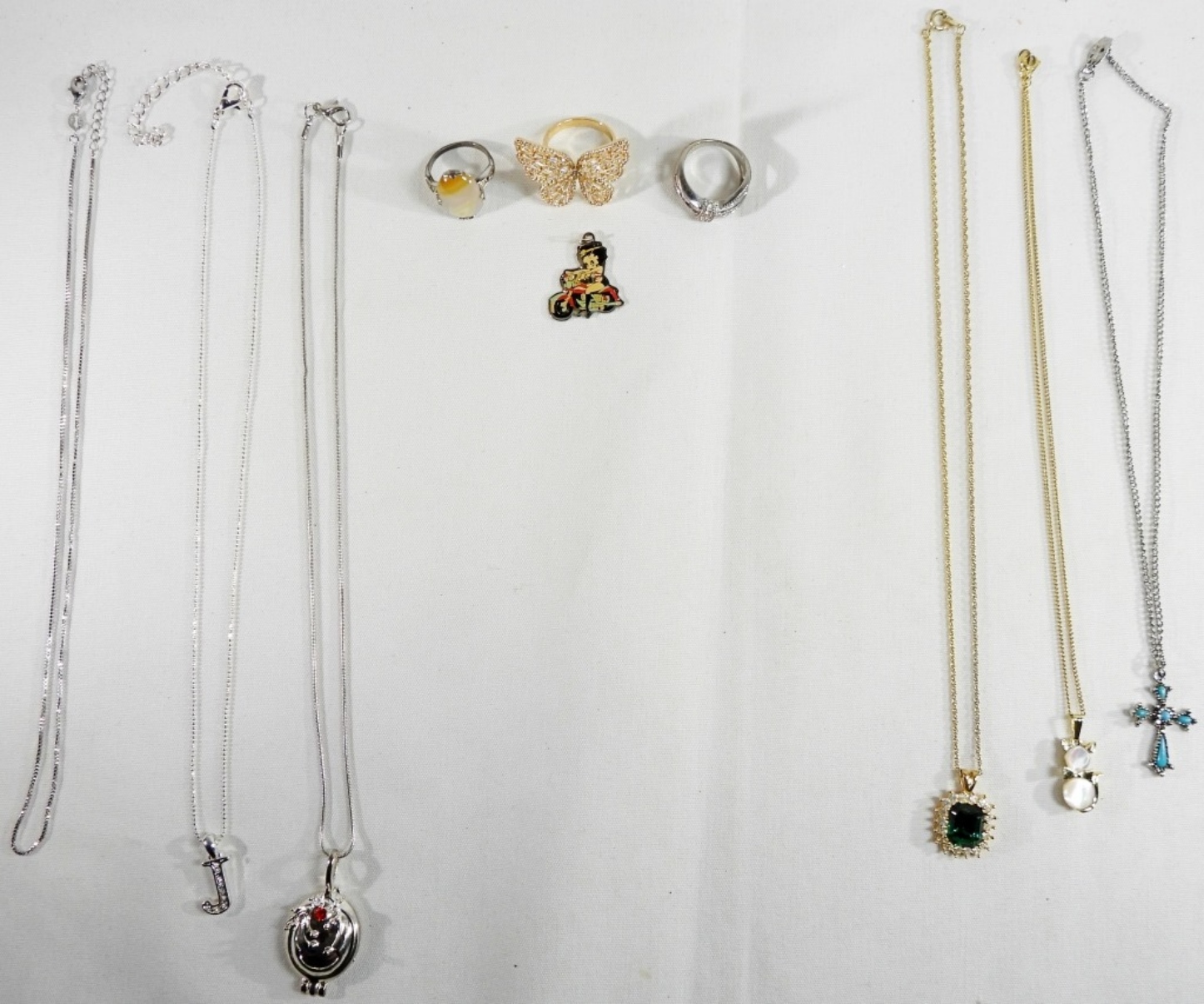 6 Necklaces, 3 Rings, 1 Necklace Charm Ring Sizes Are Between 9 1/2 And 8