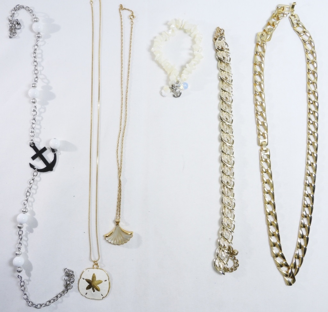 5 Gold and ocean themes necklaces such as an anchor,sand dollar charm and1 anchor bracelet