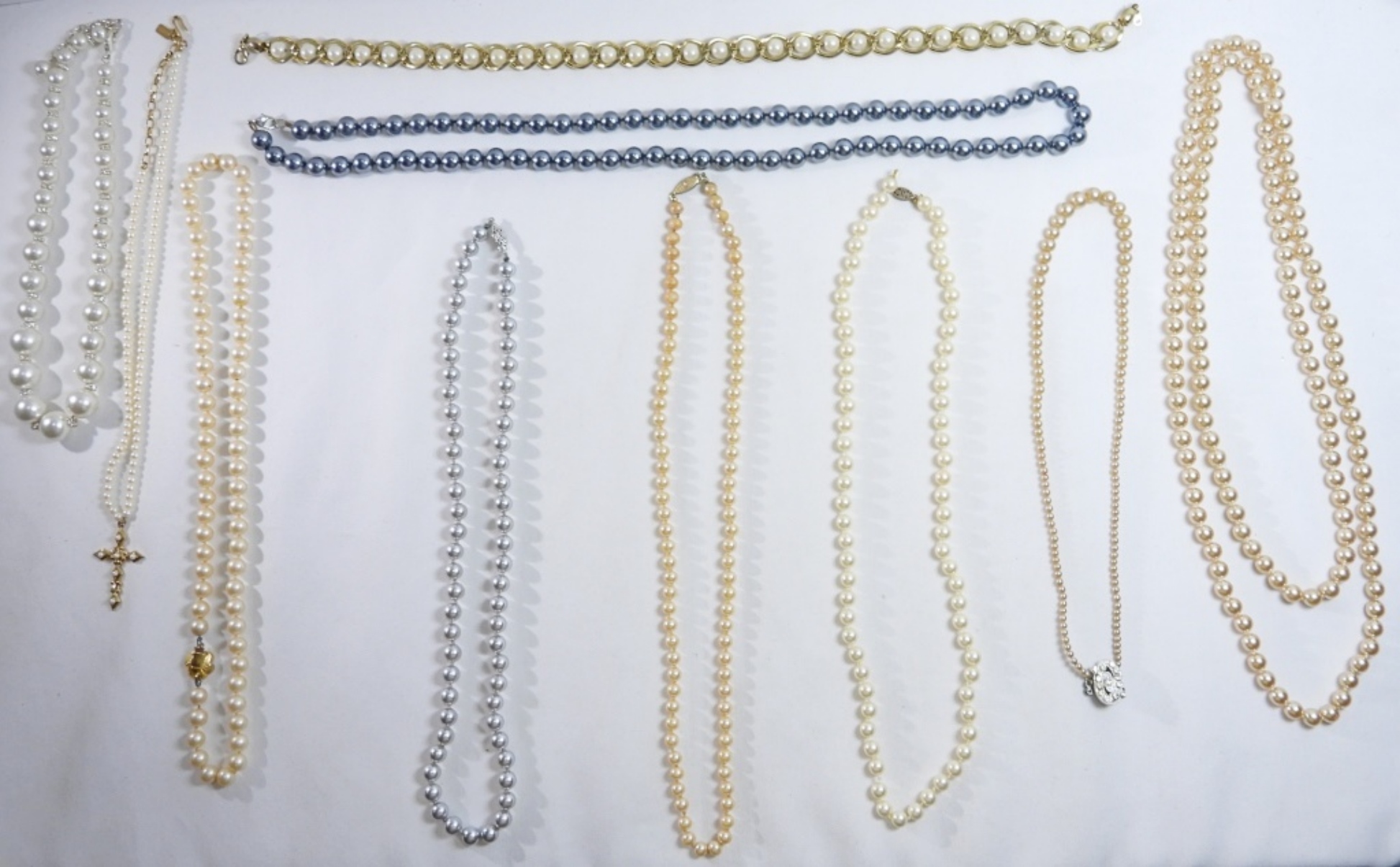 10 faux pearl necklaces some of different colors