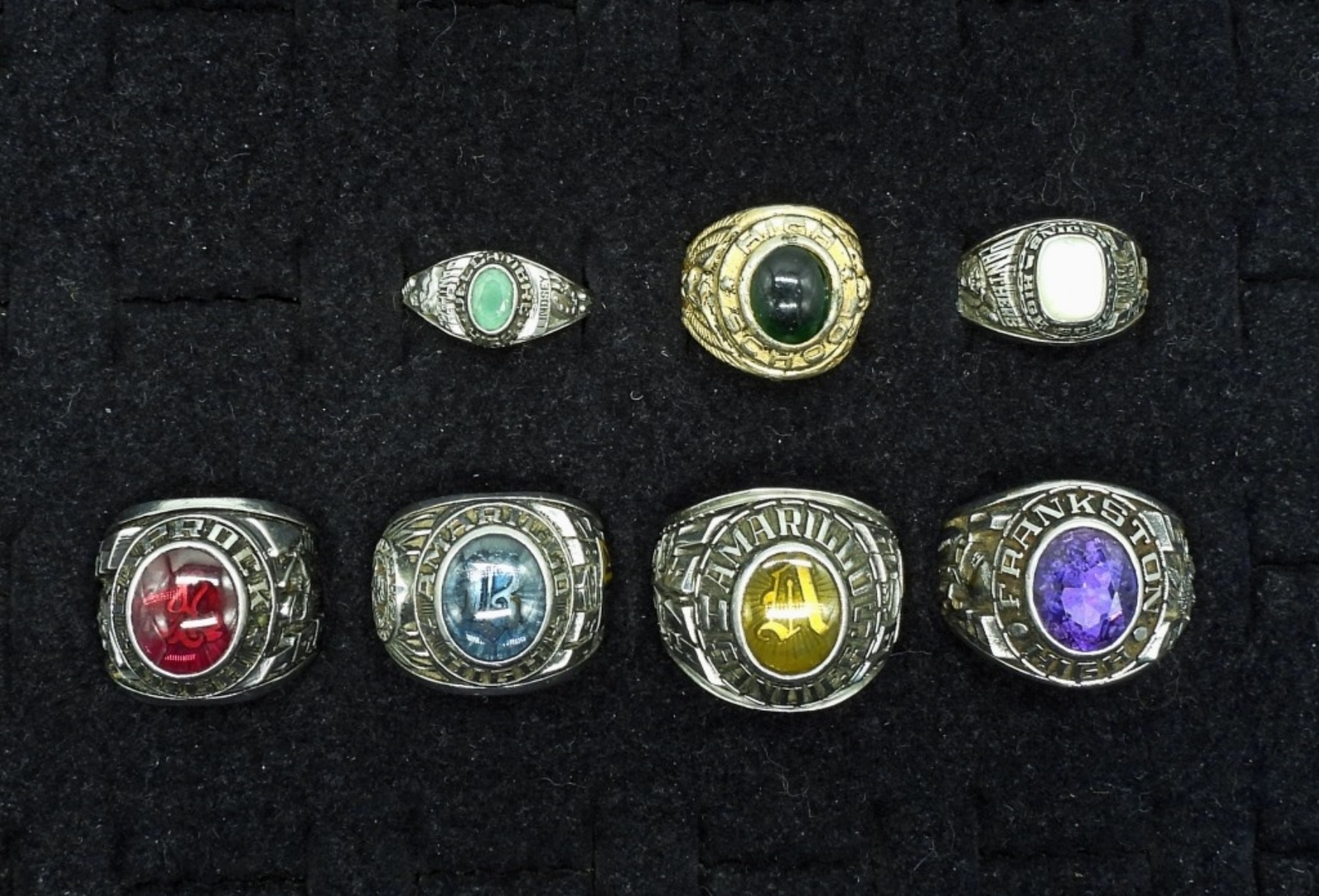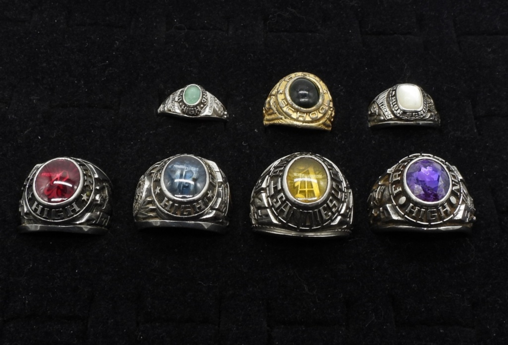 variety of sizes, each with a different color stone