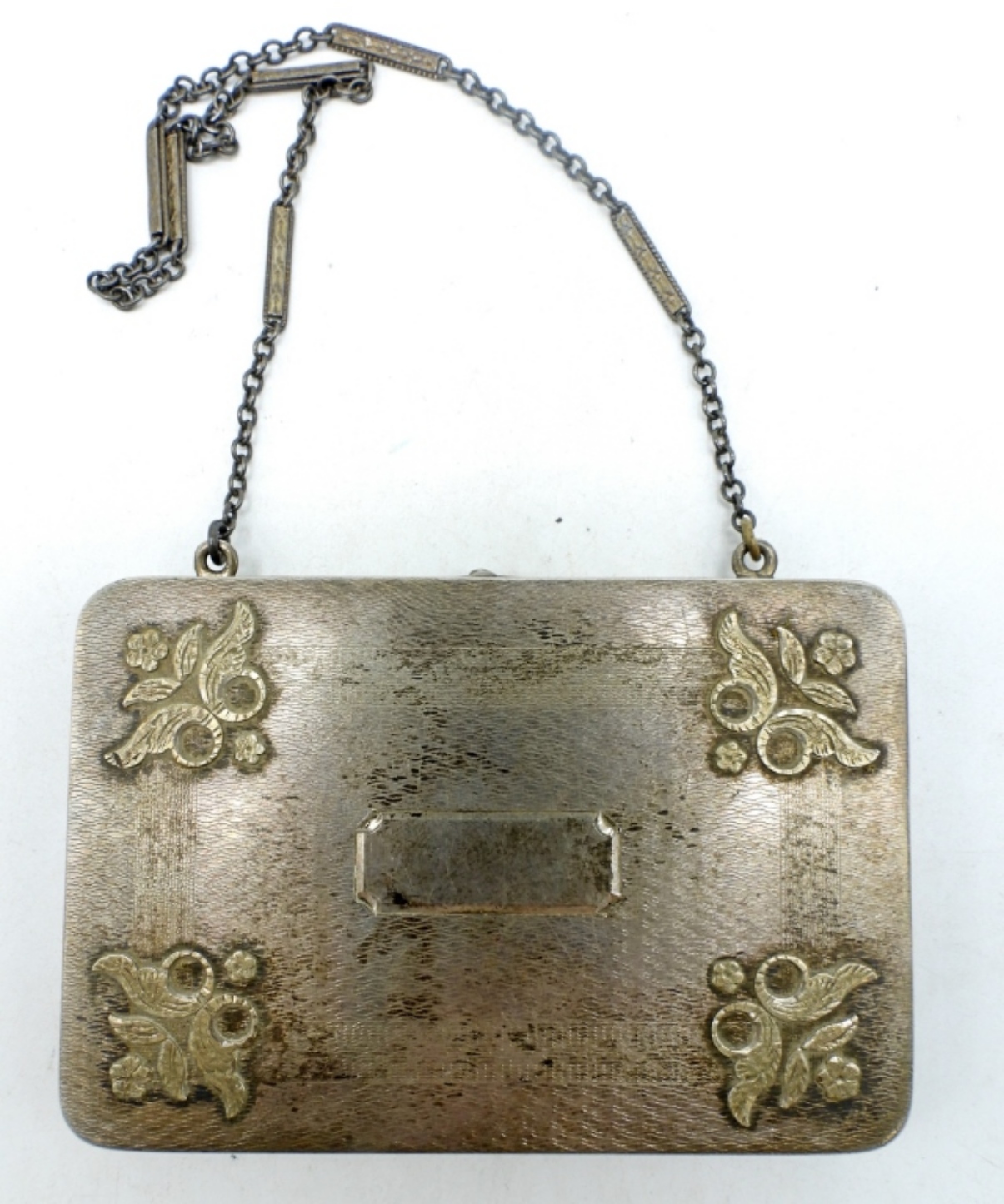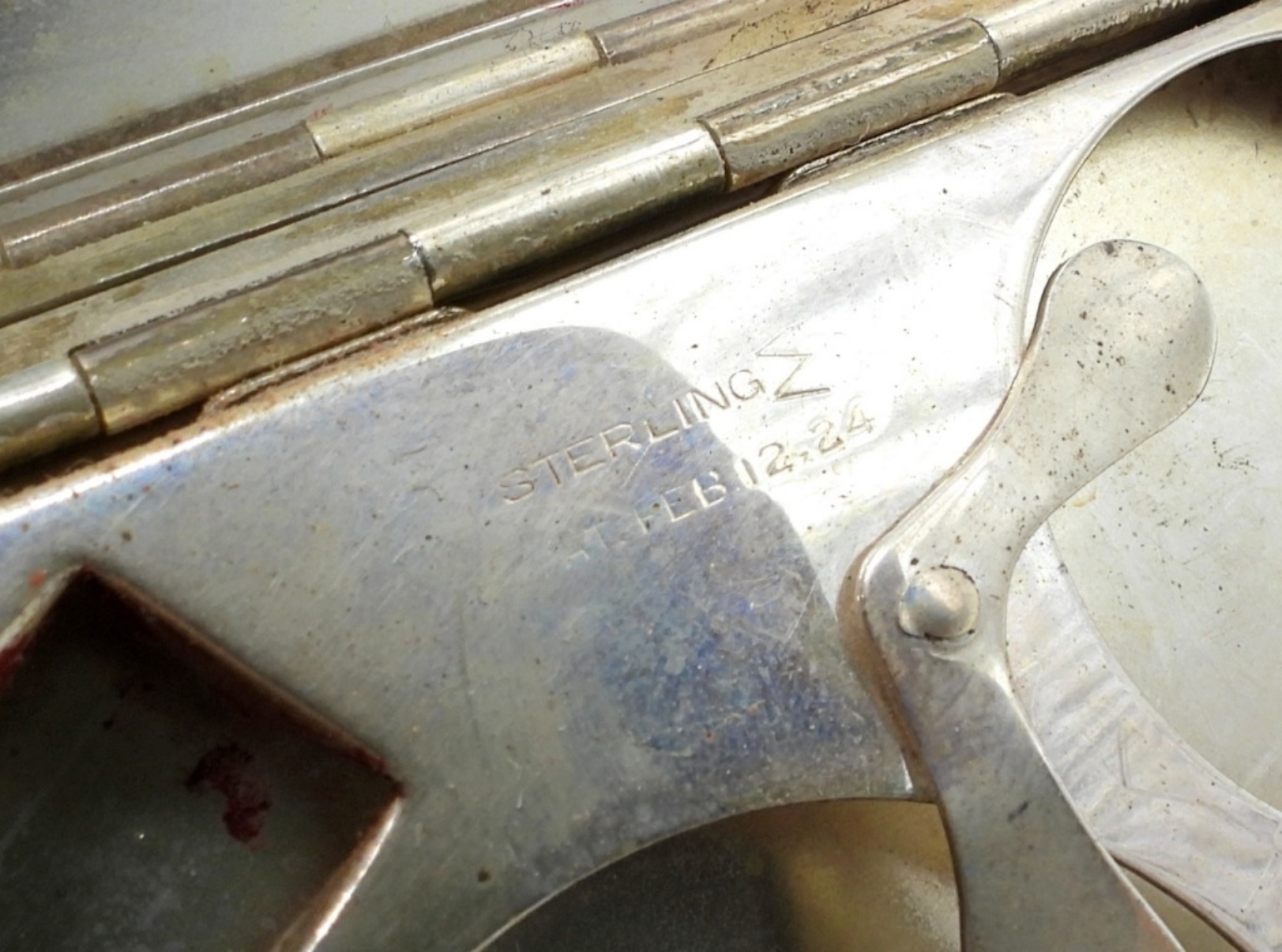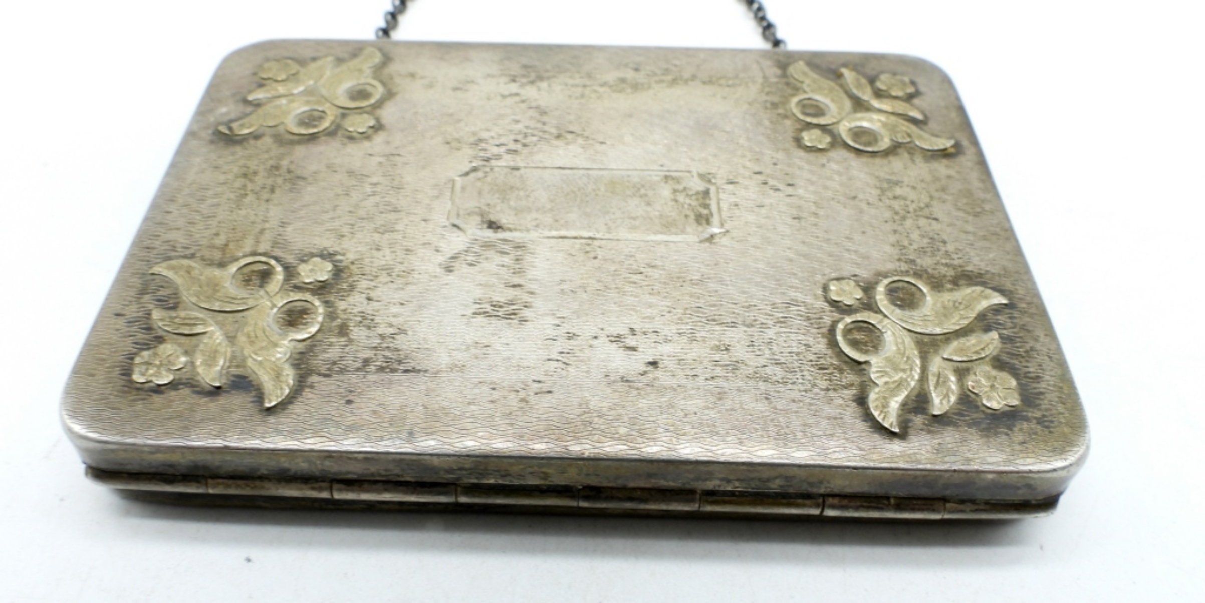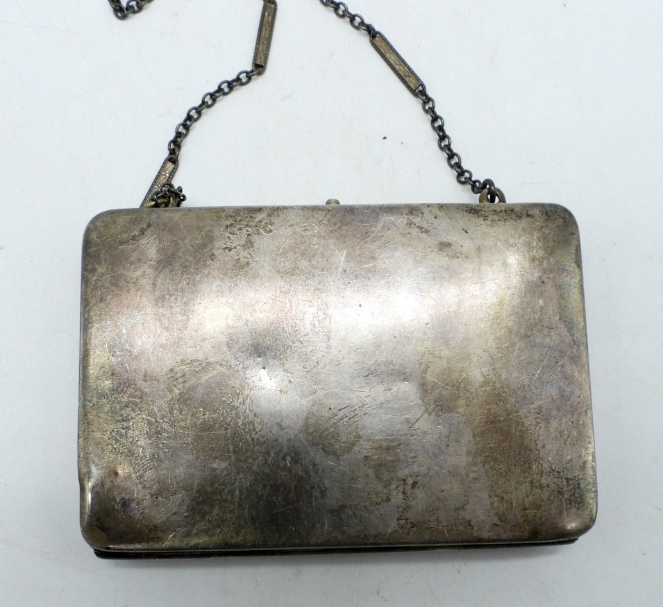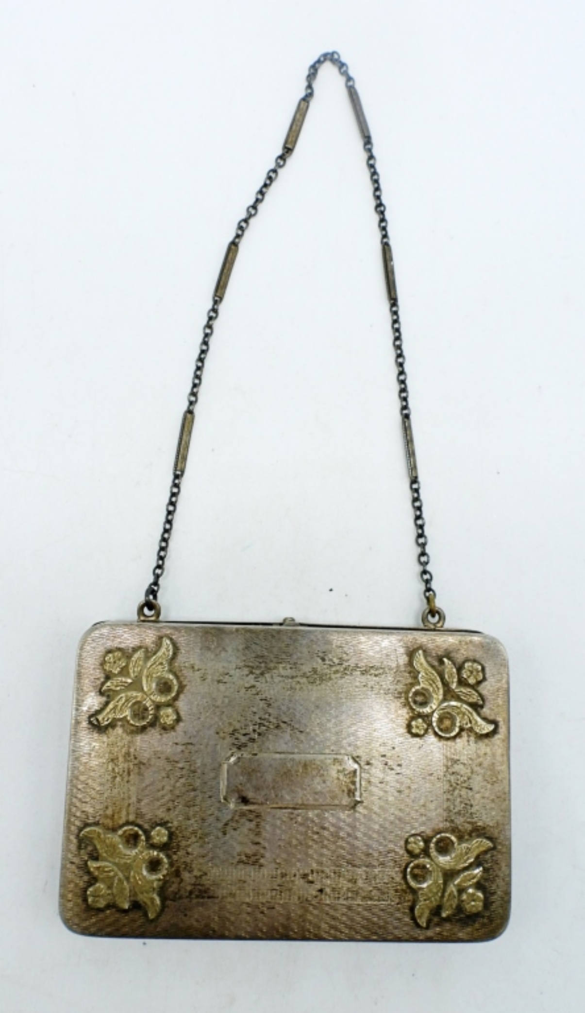 Antique Sterling Coin Purse, Possibly missing some pieces. Clasp needs help to close. “Sterling PAT. Feb 12-24″. 3.5″x 2.5”. (52.9 DWT)