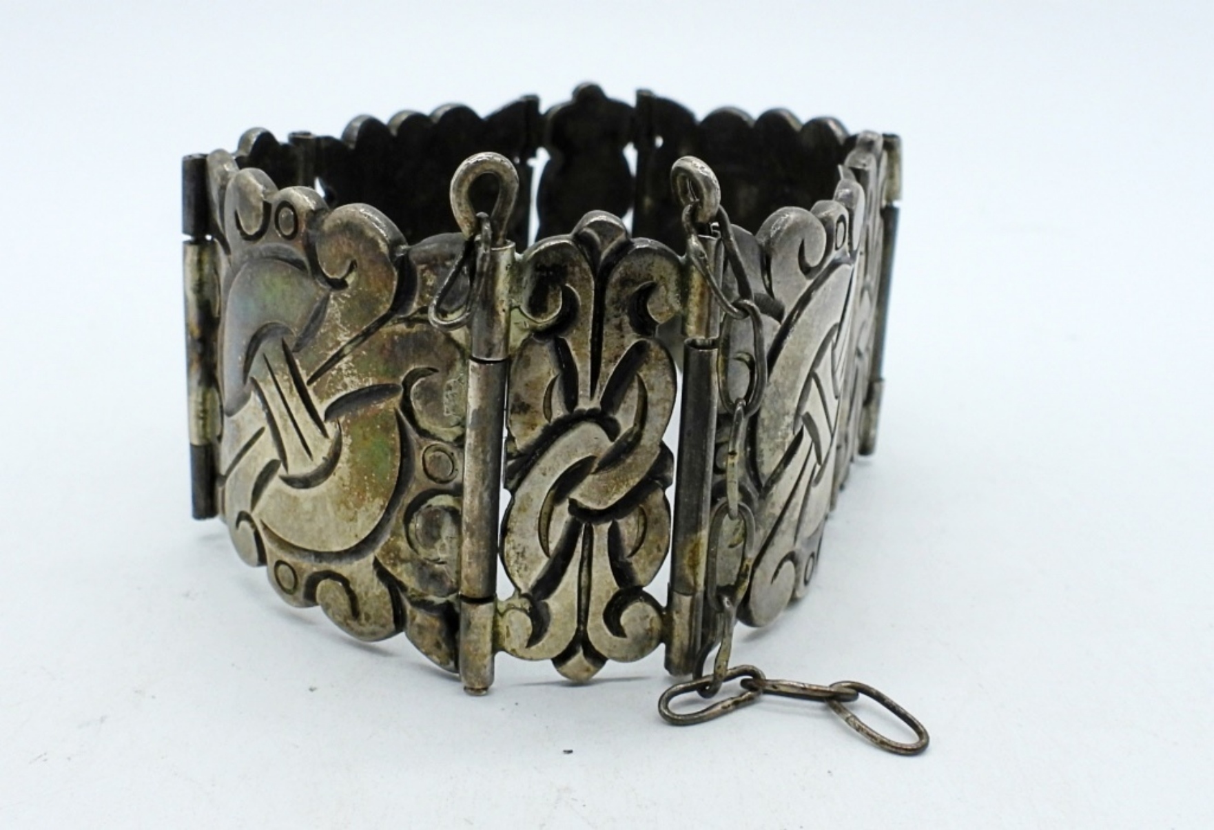 Vintage sterling taxco bracelet, stamped “Taxco 980”. Higher silver content than sterling! 6.5″ Long. (54 DWT)