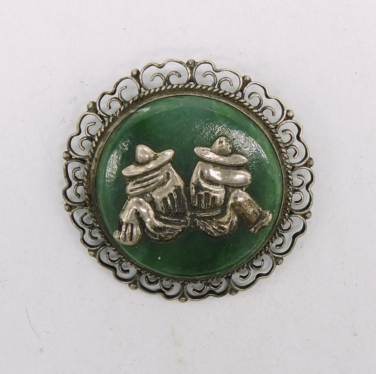 Vintage Sterling Mexico Jade Siesta Brooch. (18.2 DWT)