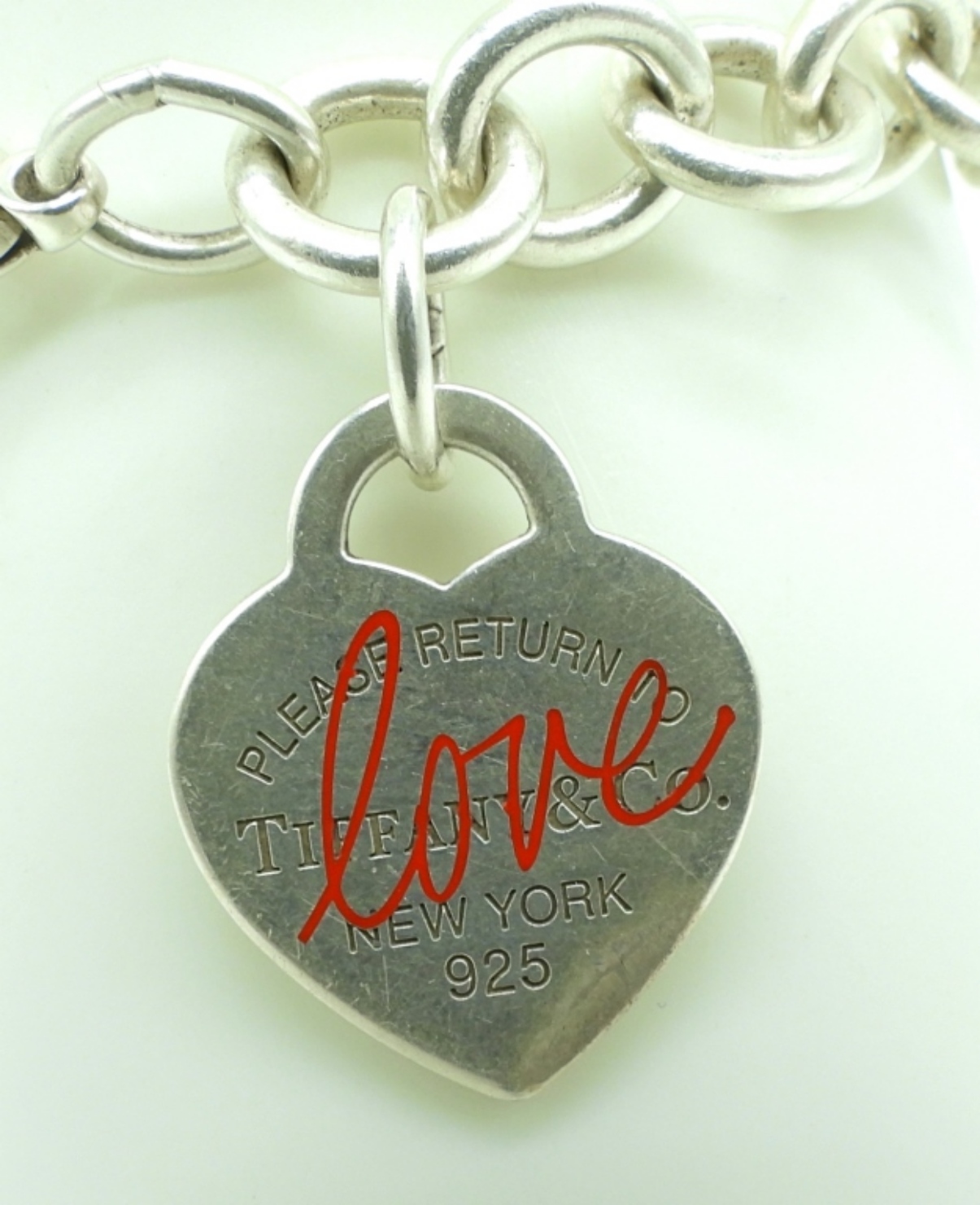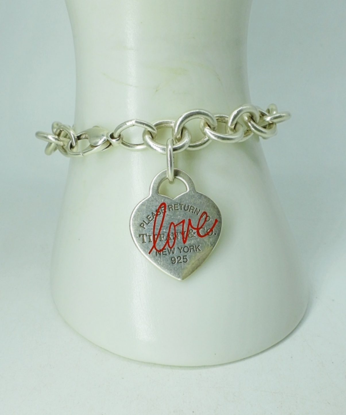 Retired sterling Tiffany & Company Return to, red enamel “love” bracelet 7″. (19.2 dwt)