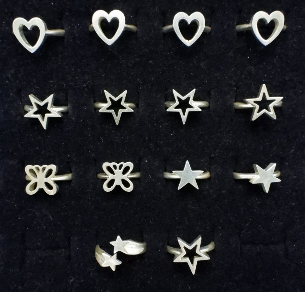 Fourteen sterling silver fashion rings. Sizes 5, 6, 7. (31.1 dwt)