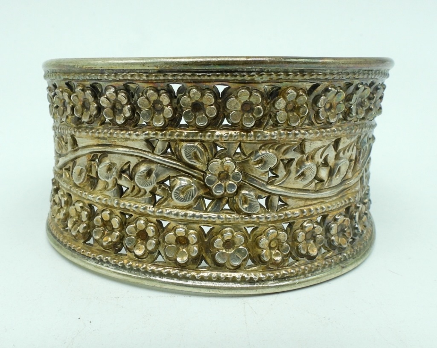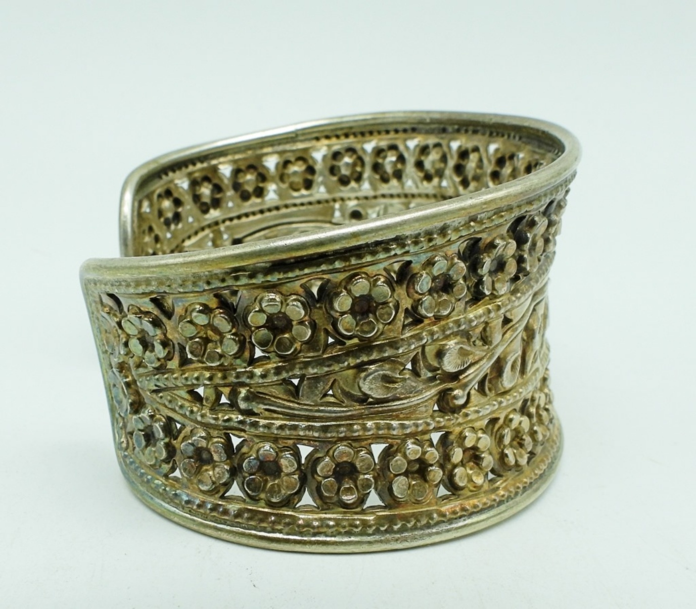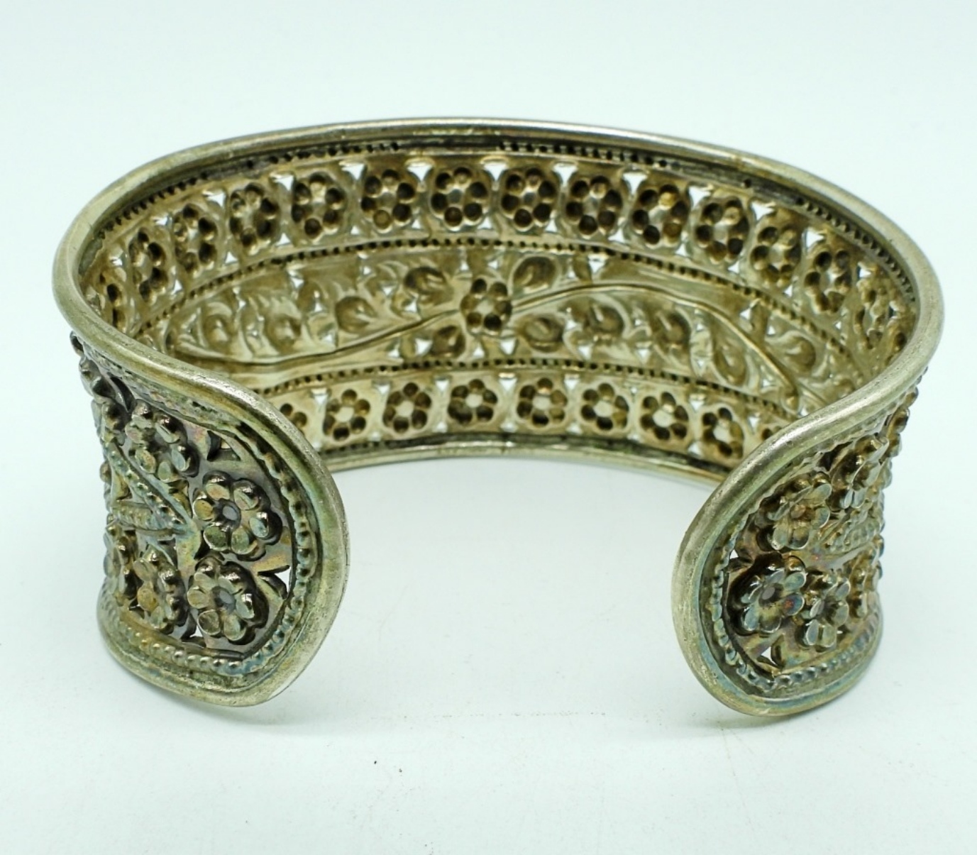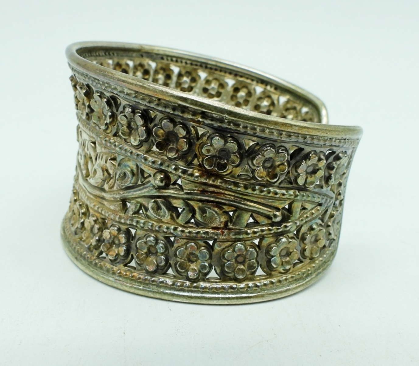 Wide sterling cuff style bracelet. 1.5″ wide, 7″ around. (22.3 dwt)