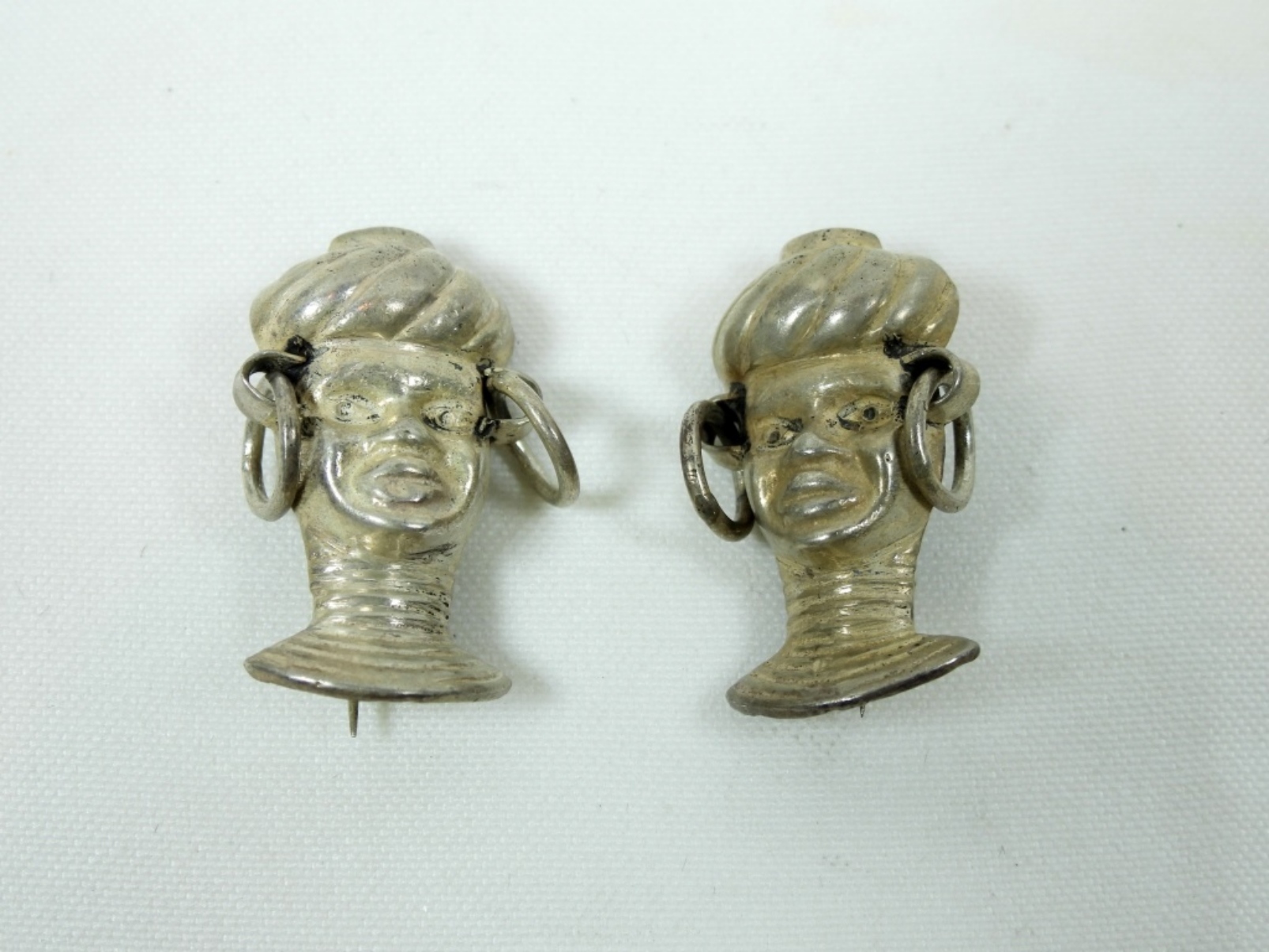 Two sterling blackamoor style pins. 1.5″ EACH. (14.1 DWT)